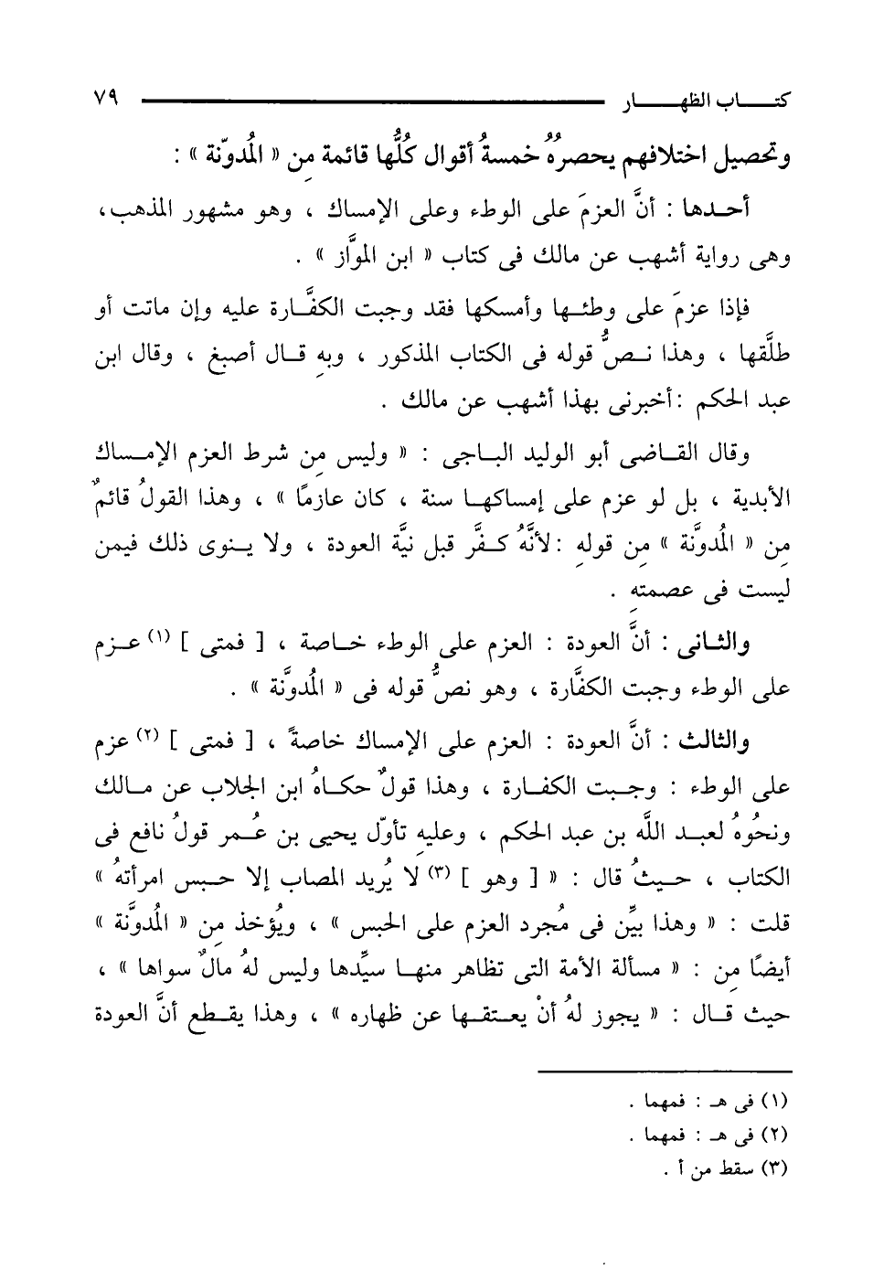 وتحصيل اختلافهم يحصرُهُ خمسةُ أقوال كُلُّها قائمة مِن "المُدوّنة":