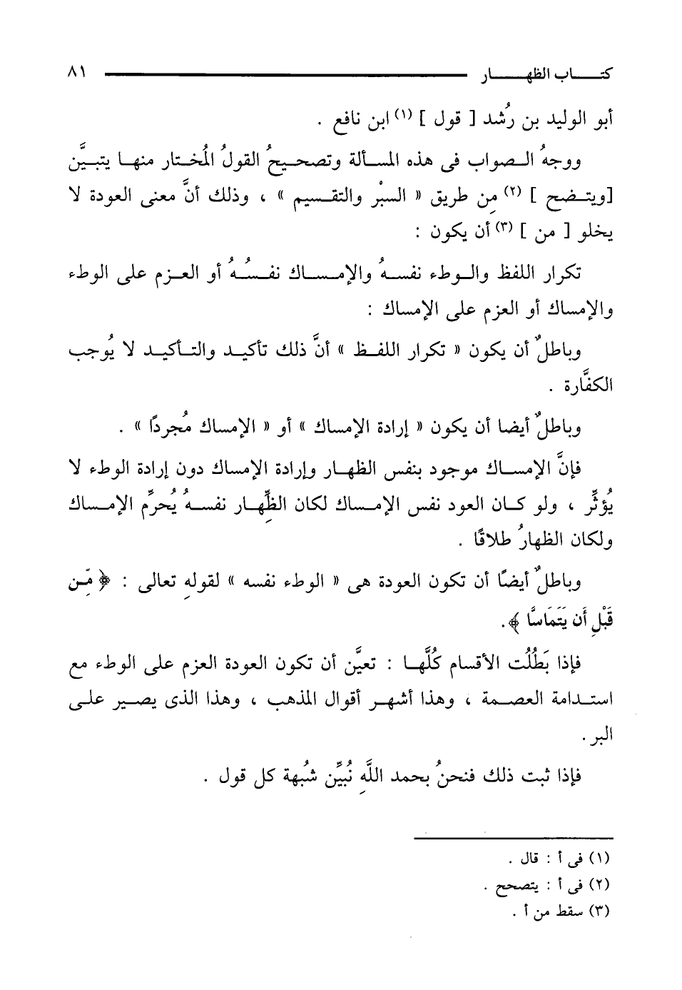 وباطلٌ أيضًا أن تكون العودة هى "الوطء نفسه" لقولهِ تعالى: {من قَبْلِ أَن يَتَمَاسَّا}.