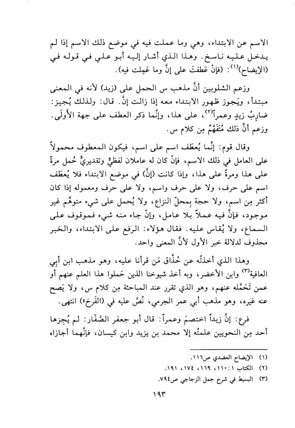 وزعم الشلوبين أن مذهب س الحمل على (زيد) لأنه في المعنى مبتدأ، ويجوز ظهور المبتدأ معه إذا زالت إن. قال: ولذلك يجيز ضارب زيد وعمرًا، على هذا، وإنما ذكر العطف على جهة الأولى. وزعم أن ذلك متفهم من كلام س.
