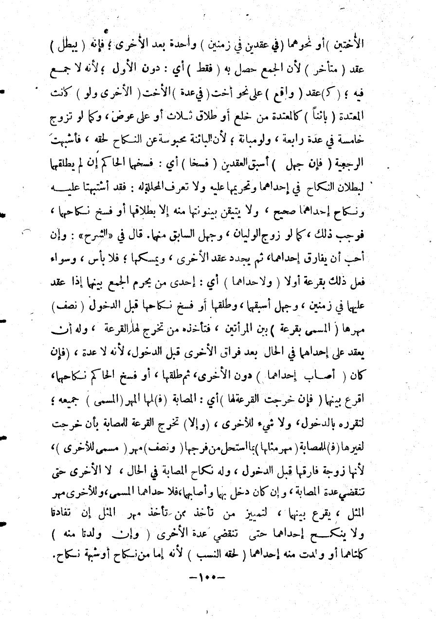 الْأُخْتَيْنِ) أَوْ نَحْوَهُمَا (فِي عَقْدَيْنِ فِي زَمَنَيْنِ) وَاحِدَةً بَعْدَ الْأُخْرَى؛ فَإِنَّهُ (يَبْطُلُ) عَقْدُ (مُتَأَخِّرٍ) لِأَنَّ الْجَمْعَ حَصَلَ بِهِ (فَقَطْ) أَيْ: دُونَ الْأَوَّلِ؛ لِأَنَّهُ لَا جَمْعَ فِيهِ؛ (كَ) عَقْدٍ (وَاقِعٍ) عَلَى نَحْوِ أُخْتٍ (فِي عِدَّةِ) الْأُخْتِ (الْأُخْرَى وَلَوْ) كَانَتْ الْمُعْتَدَّةُ (بَائِنًا) كَالْمُعْتَدَّةِ مِنْ خُلْعٍ أَوْ طَلَاقِ ثَلَاثٍ أَوْ عَلَى عِوَضٍ، وَكَمَا لَوْ تَزَوَّجَ خَامِسَةً فِي عِدَّةِ رَابِعَةٍ، وَلَوْ مُبَانَةً؛ لِأَنَّ الْبَائِنَةَ مَحْبُوسَةٌ عَنْ النِّكَاحِ لِحَقِّهِ، فَأَشْبَهَتْ الرَّجْعِيَّةَ (فَإِنْ جَهِلَ) أَسْبَقَ الْعَقْدَيْنِ (فُسِخَا) أَيْ: فَسَخَهُمَا الْحَاكِمُ إنْ لَمْ يُطَلِّقْهُمَا لِبُطْلَانِ النِّكَاحِ فِي إحْدَاهُمَا وَتَحْرِيمِهَا عَلَيْهِ وَلَا تُعْرَفُ الْمُحَلَّلَةُ لَهُ: فَقَدْ أَشْتَبَهَتَا عَلَيْهِ وَنِكَاحُ إحْدَاهُمَا صَحِيحٌ، وَلَا يُتَيَقَّنُ بَيْنُونَتُهَا مِنْهُ إلَّا بِطَلَاقِهَا أَوْ فَسْخِ نِكَاحِهِمَا، فَوَجَبَ ذَلِكَ، كَمَا لَوْ زَوَّجَ الْوَلِيَّانِ، وَجُهِلَ السَّابِقُ مِنْهُمَا. قَالَ فِي " الشَّرْحِ ": وَإِنْ أَحَبَّ أَنْ يُفَارِقَ إحْدَاهُمَا، ثُمَّ يُجَدَّدُ عَقْدَ الْأُخْرَى، وَيُمْسِكُهَا؛ فَلَا بَأْسَ، وَسَوَاءٌ فَعَلَ ذَلِكَ بِقُرْعَةٍ أَوْ لَا (وَلِإِحْدَاهُمَا) أَيْ: إحْدَى مَنْ يَحْرُمُ الْجَمْعُ بَيْنَهُمَا إذَا عَقَدَ عَلَيْهِمَا فِي زَمَنَيْنِ، وَجَهِلَ أَسْبِقَهُمَا، وَطَلَّقَهَا أَوْ فَسَخَ نِكَاحَهَا قَبْلَ الدُّخُولِ (نِصْفُ) مَهْرِهَا (الْمُسَمَّى بِقُرْعَةٍ) بَيْنَ الْمَرْأَتَيْنِ، فَتَأْخُذُ مَنْ تَخْرُجُ لَهَا الْقُرْعَةُ، وَلَهُ أَنْ يَعْقِدَ عَلَى إحْدَاهُمَا فِي الْحَالِ بَعْدَ فِرَاقِ الْأُخْرَى قَبْلَ الدُّخُولِ، لِأَنَّهُ لَا عِدَّةَ، (فَإِنْ) كَانَ (أَصَابَ إحْدَاهُمَا) دُونَ الْأُخْرَى: ثُمَّ طَلَّقَهَا، أَوْ فَسَخَ الْحَاكِمُ نِكَاحَهُمَا، أَقْرَعَ بَيْنَهُمَا (فَإِنْ خَرَجَتْ الْقُرْعَةُ لَهَا) أَيْ: الْمُصَابَةِ (فَ) لَهَا الْمَهْرُ (الْمُسَمَّى) جَمِيعُهُ؛ لِتَقَرُّرِهِ بِالدُّخُولِ، وَلَا شَيْءَ لِلْأُخْرَى، (وَإِلَّا) تَخْرُجَ الْقُرْعَةُ لِلْمُصَابَةِ بِأَنْ خَرَجَتْ لِغَيْرِهَا (فَ) لِلْمُصَابَةِ (مَهْرُ مِثْلِهَا) بِمَا اسْتَحَلَّ مِنْ فَرْجِهَا (وَنِصْفُ) مَهْرٍ (مُسَمًّى لِلْأُخْرَى) ، لِأَنَّهَا زَوْجَةٌ فَارَقَهَا قَبْلَ الدُّخُولِ، وَلَهُ نِكَاحُ الْمُصَابَةِ فِي الْحَالِ، لَا الْأُخْرَى حَتَّى تَنْقَضِيَ عِدَّةُ الْمُصَابَةِ، وَإِنْ كَانَ دَخَلَ بِهِمَا وَأَصَابَهُمَا، فَلِإِحْدَاهُمَا الْمُسَمَّى، وَلِلْأُخْرَى مَهْرُ الْمِثْلِ، يُقْرَعُ بَيْنَهُمَا: لِتَمْيِيزِ مَنْ تَأْخُذُ مِمَّنْ تَأْخُذُ مَهْرَ الْمِثْلِ إنْ تَفَادَتَا وَلَا يَنْكِحُ إحْدَاهُمَا حَتَّى تَنْقَضِيَ عِدَّةُ الْأُخْرَى (وَإِنْ وَلَدَتَا مِنْهُ) كِلْتَاهُمَا أَوْ وَلَدَتْ مِنْهُ إحْدَاهُمَا (لَحِقَهُ النَّسَبُ) لِأَنَّهُ إمَّا مِنْ نِكَاحٍ أَوْ شُبْهَةِ نِكَاحٍ.
