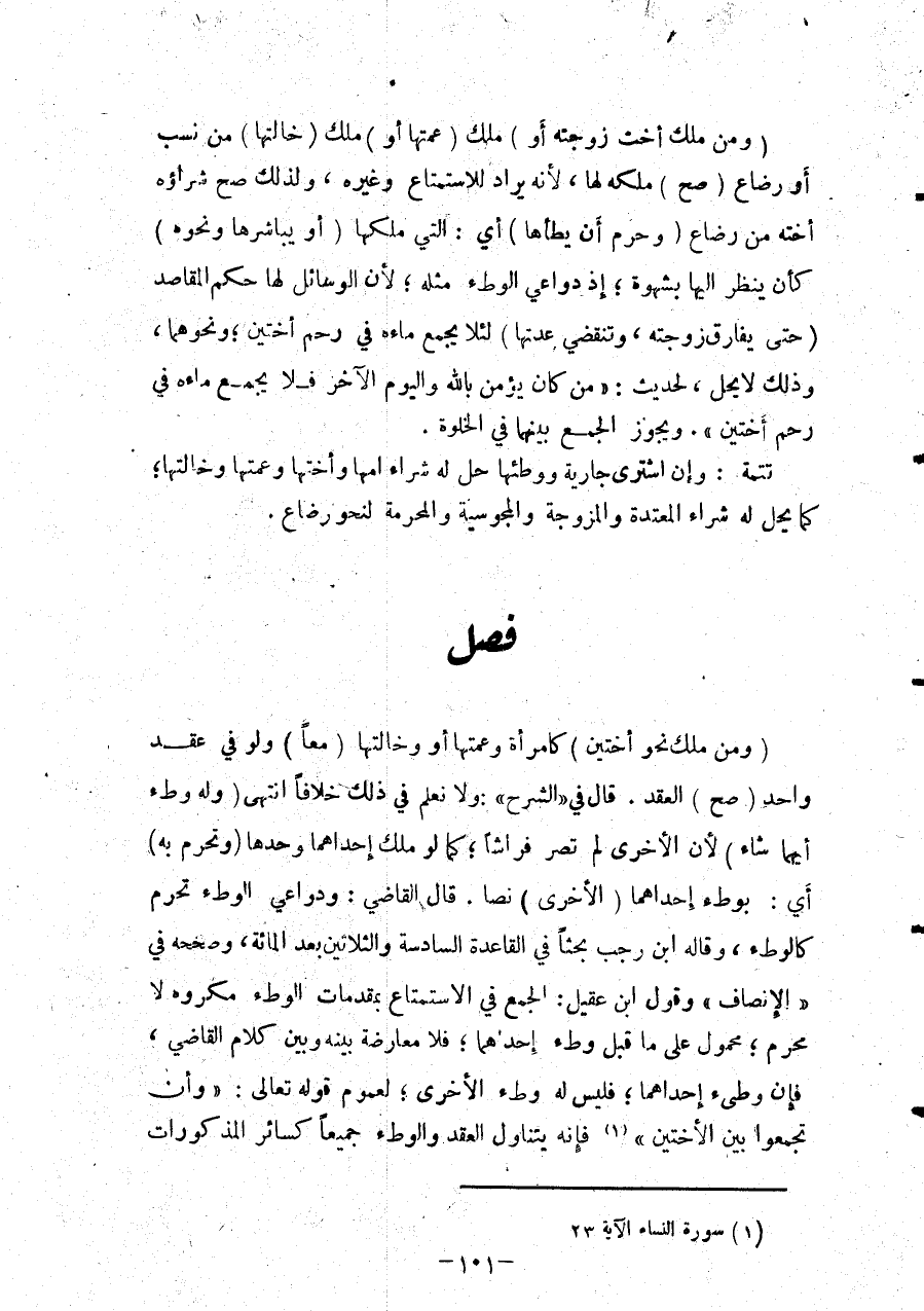 [فَصْلٌ مَنْ مَلَكَ نَحْوَ أُخْتَيْنِ كَامْرَأَةٍ وَعَمَّتِهَا أَوْ وَخَالَتِهَا فِي عَقْدِ وَاحِد]