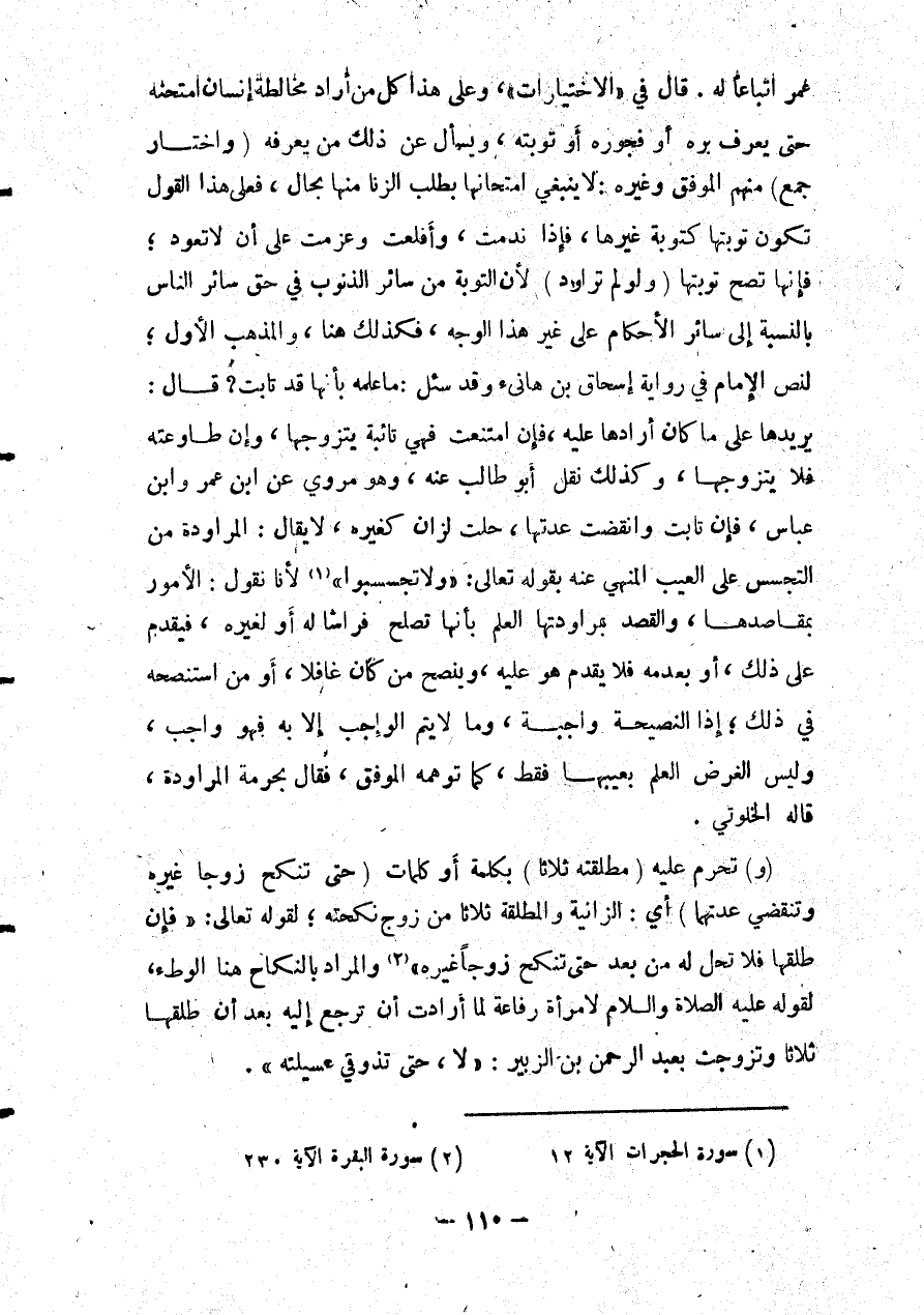 عُمَرَ اتِّبَاعًا لَهُ. قَالَ فِي " الِاخْتِيَارَاتِ "، وَعَلَى هَذَا كُلُّ مَنْ أَرَادَ مُخَالَطَةَ إنْسَانٍ امْتَحَنَهُ حَتَّى يَعْرِفَ بِرَّهُ أَوْ فُجُورَهُ أَوْ تَوْبَتَهُ، وَيَسْأَلُ عَنْ ذَلِكَ مَنْ يَعْرِفُهُ (وَاخْتَارَ جَمْعٌ) مِنْهُمْ الْمُوَفَّقُ وَغَيْرُهُ: لَا يَنْبَغِي امْتِحَانُهَا بِطَلَبِ الزِّنَا مِنْهَا بِحَالٍ، فَعَلَى هَذَا الْقَوْلِ تَكُونُ تَوْبَتُهَا كَتَوْبَةِ غَيْرِهَا، فَإِذَا نَدِمَتْ، وَأَقْلَعَتْ وَعَزَمَتْ عَلَى أَنْ لَا تَعُودَ؛ فَإِنَّهَا تَصِحُّ تَوْبَتُهَا (وَلَوْ لَمْ تُرَاوَدْ) لِأَنَّ التَّوْبَةَ مِنْ سَائِرِ الذُّنُوبِ فِي حَقِّ سَائِرِ النَّاسِ بِالنِّسْبَةِ إلَى سَائِرِ الْأَحْكَامِ عَلَى غَيْرِ هَذَا الْوَجْهِ، فَكَذَلِكَ هُنَا، وَالْمَذْهَبُ الْأَوَّلُ؛ لِنَصِّ الْإِمَامِ فِي رِوَايَةِ إِسْحَاقَ بْنِ هَانِئٍ وَقَدْ سُئِلَ: مَا عِلْمُهُ بِأَنَّهَا قَدْ تَابَتْ؟ قَالَ: يُرِيدُهَا عَلَى مَا كَانَ أَرَادَهَا عَلَيْهِ، فَإِنْ امْتَنَعَتْ فَهِيَ تَائِبَةٌ يَتَزَوَّجُهَا، وَإِنْ طَاوَعَتْهُ فَلَا يَتَزَوَّجُهَا، وَكَذَلِكَ نَقَلَ أَبُو طَالِبٍ عَنْهُ، وَهُوَ مَرْوِيٌّ عَنْ ابْنِ عُمَرَ وَابْنِ عَبَّاسٍ، فَإِنْ تَابَتْ وَانْقَضَتْ عِدَّتُهَا، حَلَّتْ لِزَانٍ كَغَيْرِهِ، لَا يُقَالُ: الْمُرَاوَدَةُ مِنْ التَّجَسُّسِ عَلَى الْعَيْبِ الْمَنْهِيِّ عَنْهُ بِقَوْلِهِ تَعَالَى {وَلا تَجَسَّسُوا} [الحجرات: 12] لِأَنَّا نَقُولُ: الْأُمُورُ بِمَقَاصِدِهَا، وَالْقَصْدُ بِمُرَاوَدَتِهَا الْعِلْمُ بِأَنَّهَا فِرَاشًا لَهُ أَوْ لِغَيْرِهِ، فَيَقْدُمُ عَلَى ذَلِكَ، أَوْ بِعَدَمِهِ فَلَا يَقْدُمُ هُوَ عَلَيْهِ، وَيَنْصَحُ مَنْ كَانَ غَافِلًا، أَوْ مَنْ اسْتَنْصَحَهُ فِي ذَلِكَ؛ إذَا النَّصِيحَةُ وَاجِبَةٌ، وَمَا لَا يَتِمُّ الْوَاجِبُ إلَّا بِهِ فَهُوَ وَاجِبٌ، وَلَيْسَ الْغَرَضُ الْعِلْمَ بِعَيْبِهَا فَقَطْ، كَمَا تَوَهَّمَهُ الْمُوَفَّقُ، فَقَالَ بِحُرْمَةِ الْمُرَاوَدَةِ، قَالَهُ الْخَلْوَتِيُّ.