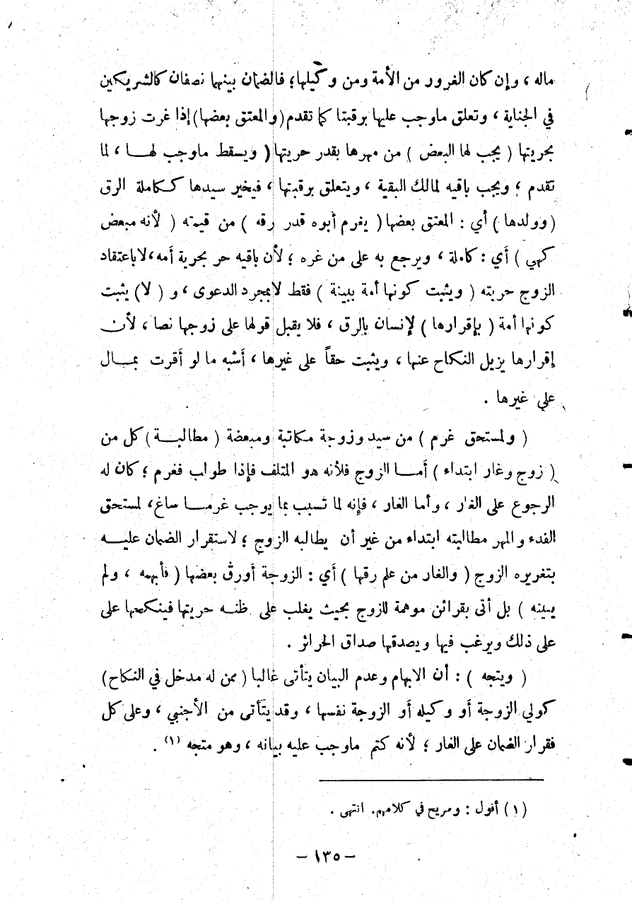 (وَلِمُسْتَحِقٍّ غَرِمَ) مِنْ سَيِّدٍ وَزَوْجَةٍ مُكَاتَبَةٍ وَمُبَعَّضَةٍ (مُطَالَبَةُ) كُلٍّ مِنْ (زَوْجٍ وَغَارٍّ ابْتِدَاءً) أَمَّا الزَّوْجُ فَلِأَنَّهُ هُوَ الْمُتْلِفُ فَإِذَا طُولِبَ فَغَرِمَ؛ كَانَ لَهُ الرُّجُوعُ عَلَى الْغَارِّ، وَأَمَّا الْغَارُّ، فَإِنَّهُ لَمَّا تَسَبَّبَ بِمَا يُوجِبُ غُرْمًا سَاغَ، لِمُسْتَحِقِّ الْفِدَاءِ وَالْمَهْرِ مُطَالَبَتُهُ ابْتِدَاءً مِنْ غَيْرِ أَنْ يُطَالِبَهُ الزَّوْجُ؛ لِاسْتِقْرَارِ الضَّمَانِ عَلَيْهِ بِتَغْرِيرِهِ الزَّوْجَ (وَالْغَارُّ مَنْ عَلِمَ رِقَّهَا) أَيْ: الزَّوْجَةِ أَوْ رِقَّ بَعْضِهَا (فَأَبْهَمَهُ، وَلَمْ يُبَيِّنْهُ) بَلْ أَتَى بِقَرَائِنَ مُوَهِّمَةً لِلزَّوْجِ بِحَيْثُ يَغْلِبُ عَلَى ظَنِّهِ حُرِّيَّتَهَا فَيَنْكِحُهَا عَلَى ذَلِكَ وَيَرْغَبُ فِيهَا وَيُصْدِقُهَا صَدَاقَ الْحَرَائِرِ. (وَيَتَّجِهُ) : أَنَّ الْإِبْهَامَ وَعَدَمَ الْبَيَانِ يَتَأَتَّى غَالِبًا (مِمَّنْ لَهُ مَدْخَلٌ فِي النِّكَاحِ) كَوَلِيِّ الزَّوْجَةِ أَوْ وَكِيلِهِ أَوْ الزَّوْجَةِ نَفْسِهَا، وَقَدْ يَتَأَتَّى مِنْ الْأَجْنَبِيِّ، وَعَلَى كُلٍّ فَقَرَارُ الضَّمَانِ عَلَى الْغَارِّ؛ لِأَنَّهُ كَتَمَ مَا وَجَبَ عَلَيْهِ بَيَانُهُ، وَهُوَ مُتَّجِهٌ.