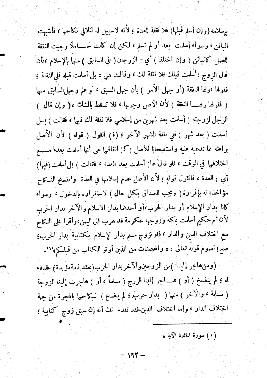 (وَإِنْ قَالَ) الرَّجُلُ لِزَوْجَتِهِ (أَسْلَمْت بَعْدَ شَهْرَيْنِ مِنْ إسْلَامِي فَلَا نَفَقَةَ لَكِ فِيهِمَا، فَقَالَتْ) بَلْ أَسْلَمْتُ (بَعْدَ شَهْرٍ) فَلِي نَفَقَةُ الشَّهْرِ الْآخَرِ (فَ) الْقَوْلُ (قَوْلُهُ) لِأَنَّ الْأَصْلَ بَرَاءَتُهُ مِمَّا تَدَّعِيهِ عَلَيْهِ وَاسْتِصْحَابًا لِلْأَصْلِ (كَ) اتِّفَاقِهِمَا عَلَى أَنَّهَا أَسْلَمَتْ بَعْدَهُ مَعَ اخْتِلَافِهِمَا فِي الْوَقْتِ، فَلَوْ قَالَ لَهَا (أَسْلَمْت بَعْدَ الْعِدَّةِ، فَقَالَتْ) بَلْ أَسْلَمْت (فِيهَا) أَيْ: الْعِدَّةِ، فَالْقَوْلُ قَوْلُهُ؛ لِأَنَّ الْأَصْلَ عَدَمُ إسْلَامِهَا فِي الْعِدَّةِ وَانْفَسَخَ النِّكَاحُ مُؤَاخَذَةً لَهُ بِإِقْرَارِهِ (وَيَجِبُ الصَّدَاقُ بِكُلِّ حَالٍ) لِاسْتِقْرَارِهِ بِالدُّخُولِ، وَسَوَاءٌ كَانَا بِدَارِ الْإِسْلَامِ أَوْ بِدَارِ الْحَرْبِ، أَوْ أَحَدُهُمَا بِدَارِ الْإِسْلَامِ وَالْآخَرُ بِدَارِ الْحَرْبِ؛ لِأَنَّ «أُمَّ حَكِيمٍ أَسْلَمَتْ بِمَكَّةَ وَزَوْجُهَا عِكْرِمَةُ قَدْ هَرَبَ إلَى الْيَمَنِ، وَأُقِرَّا عَلَى النِّكَاحِ مَعَ اخْتِلَافِ الدِّينِ وَالدَّارِ» ، فَلَوْ تَزَوَّجَ مُسْلِمٌ بِدَارِ الْإِسْلَامِ بِكِتَابِيَّةٍ بِدَارِ الْحَرْبِ صَحَّ؛ لِعُمُومِ قَوْله تَعَالَى: {وَالْمُحْصَنَاتُ مِنَ الَّذِينَ أُوتُوا الْكِتَابَ مِنْ قَبْلِكُمْ} [المائدة: 5] .