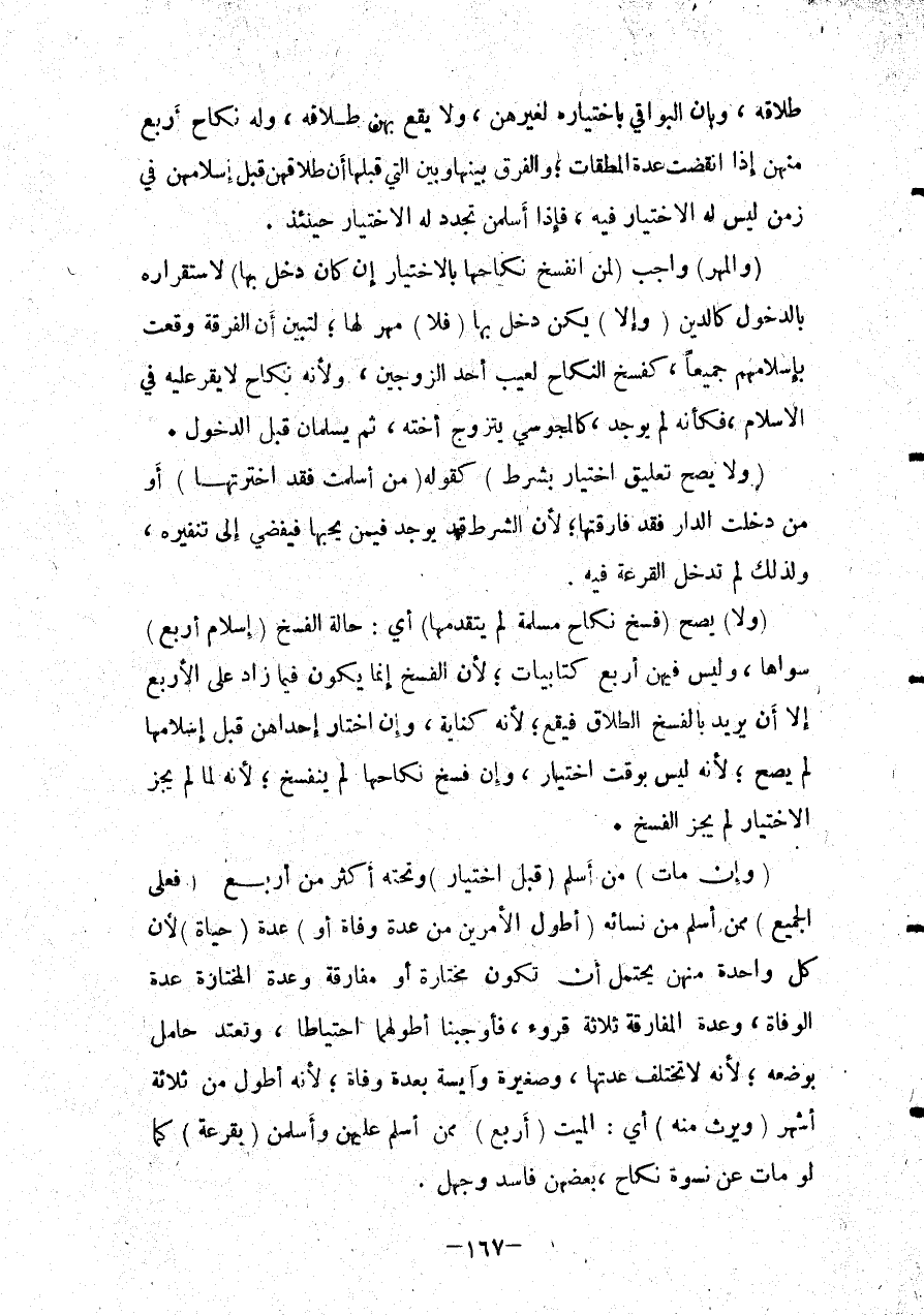 طَلَاقِهِ، وَبَانَ الْبَوَاقِي بِاخْتِيَارِهِ لِغَيْرِهِنَّ، وَلَا يَقَعُ بِهِنَّ طَلَاقُهُ، وَلَهُ نِكَاحُ أَرْبَعٍ مِنْهُنَّ إذَا انْقَضَتْ عِدَّةُ الْمُطَلَّقَاتِ؛ وَالْفَرْقُ بَيْنَهَا وَبَيْنَ الَّتِي قَبْلَهَا أَنَّ طَلَاقَهُنَّ قَبْلَ إسْلَامِهِنَّ فِي زَمَنٍ لَيْسَ لَهُ الِاخْتِيَارُ فِيهِ، فَإِذَا أَسْلَمْنَ تَجَدَّدَ لَهُ الِاخْتِيَارُ حِينَئِذٍ. (وَالْمَهْرُ) وَاجِبٌ (لِمَنْ انْفَسَخَ نِكَاحُهَا بِالِاخْتِيَارِ إنْ كَانَ دَخَلَ بِهَا) لِاسْتِقْرَارِهِ بِالدُّخُولِ كَالدِّينِ (وَإِلَّا) يَكُنْ دَخَلَ بِهَا (فَلَا) مَهْرَ لَهَا؛ لِتَبَيُّنِ أَنَّ الْفُرْقَةَ وَقَعَتْ بِإِسْلَامِهِمْ جَمِيعًا، كَفَسْخِ النِّكَاحِ لِعَيْبِ أَحَدِ الزَّوْجَيْنِ، وَلِأَنَّهُ نِكَاحٌ لَا يُقَرُّ عَلَيْهِ فِي الْإِسْلَامِ، فَكَأَنَّهُ لَمْ يُوجَدْ، كَالْمَجُوسِيِّ يَتَزَوَّجُ أُخْتَهُ، ثُمَّ يُسْلِمَانِ قَبْلَ الدُّخُولِ.