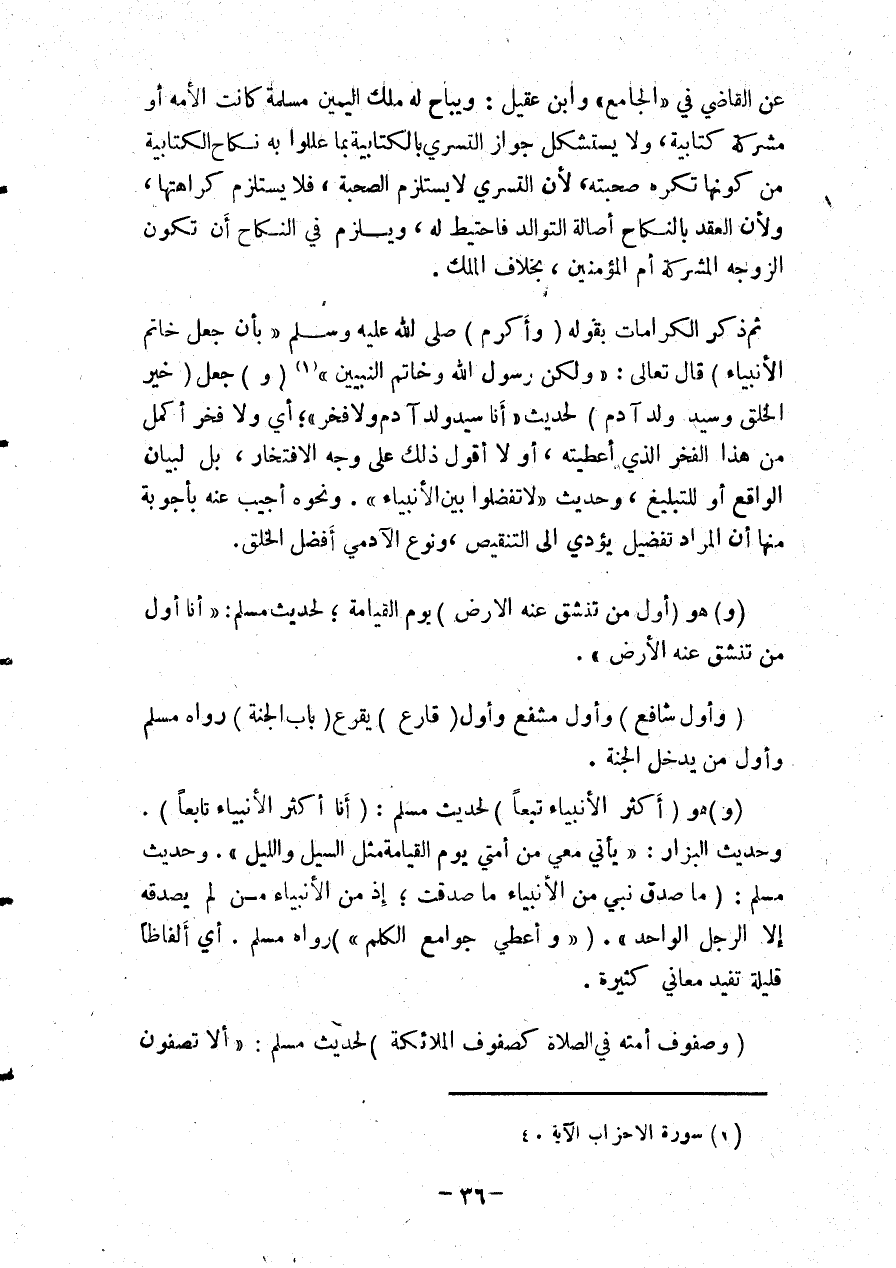 وَحَدِيثِ مُسْلِمٍ: «مَا صُدِّقَ نَبِيٌّ مِنْ الْأَنْبِيَاءِ مَا صُدِّقْت؛ إذْ مِنْ الْأَنْبِيَاءِ مَنْ لَمْ يُصَدِّقْهُ إلَّا الرَّجُلُ الْوَاحِدُ» ) ". (" وَأُعْطِيَ جَوَامِعَ الْكَلِمِ ") رَوَاهُ مُسْلِمٌ. أَيْ أَلْفَاظًا قَلِيلَةً تُفِيدُ مَعَانِيَ كَثِيرَةً.