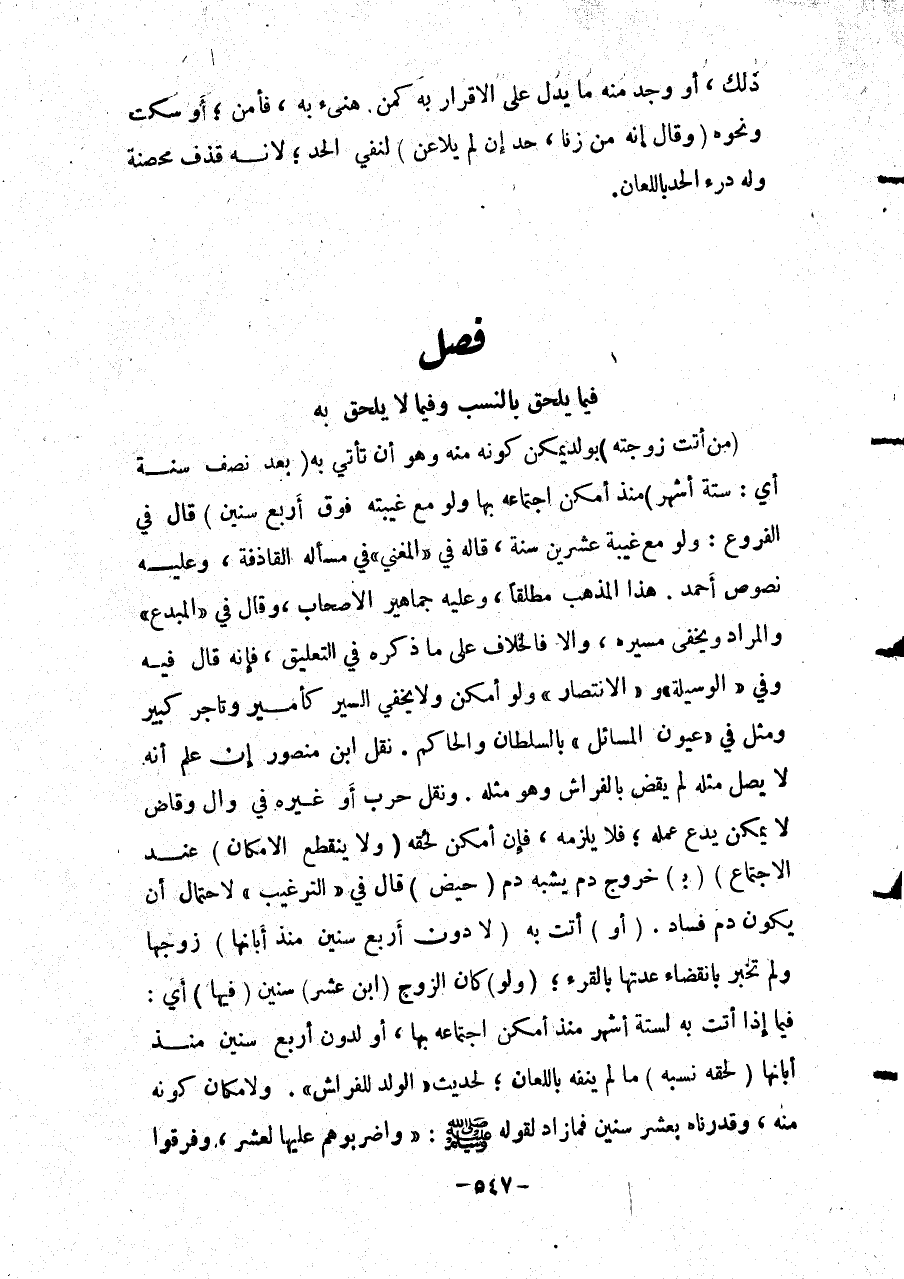 ِ (مَنْ أَتَتْ زَوْجَتُهُ) بِوَلَدٍ يُمْكِنُ كَوْنُهُ مِنْهُ وَهُوَ أَنْ تَأْتِيَ بِهِ (بَعْدَ نِصْفِ سَنَةٍ أَيْ: سِتَّةِ أَشْهُرٍ) مُنْذُ أَمْكَنَ اجْتِمَاعُهُ بِهَا وَلَوْ مَعَ غَيْبَتِهِ (فَوْقَ أَرْبَعِ سِنِينَ) قَالَ فِي الْفُرُوعِ: وَلَوْ مَعَ غَيْبَةِ عِشْرِينَ سَنَةً، قَالَهُ فِي " الْمُغْنِي " فِي مَسْأَلَةِ الْقَاذِفَةِ، وَعَلَيْهِ نُصُوصُ أَحْمَدَ هَذَا الْمَذْهَبُ مُطْلَقًا، وَعَلَيْهِ جَمَاهِيرُ الْأَصْحَابِ.