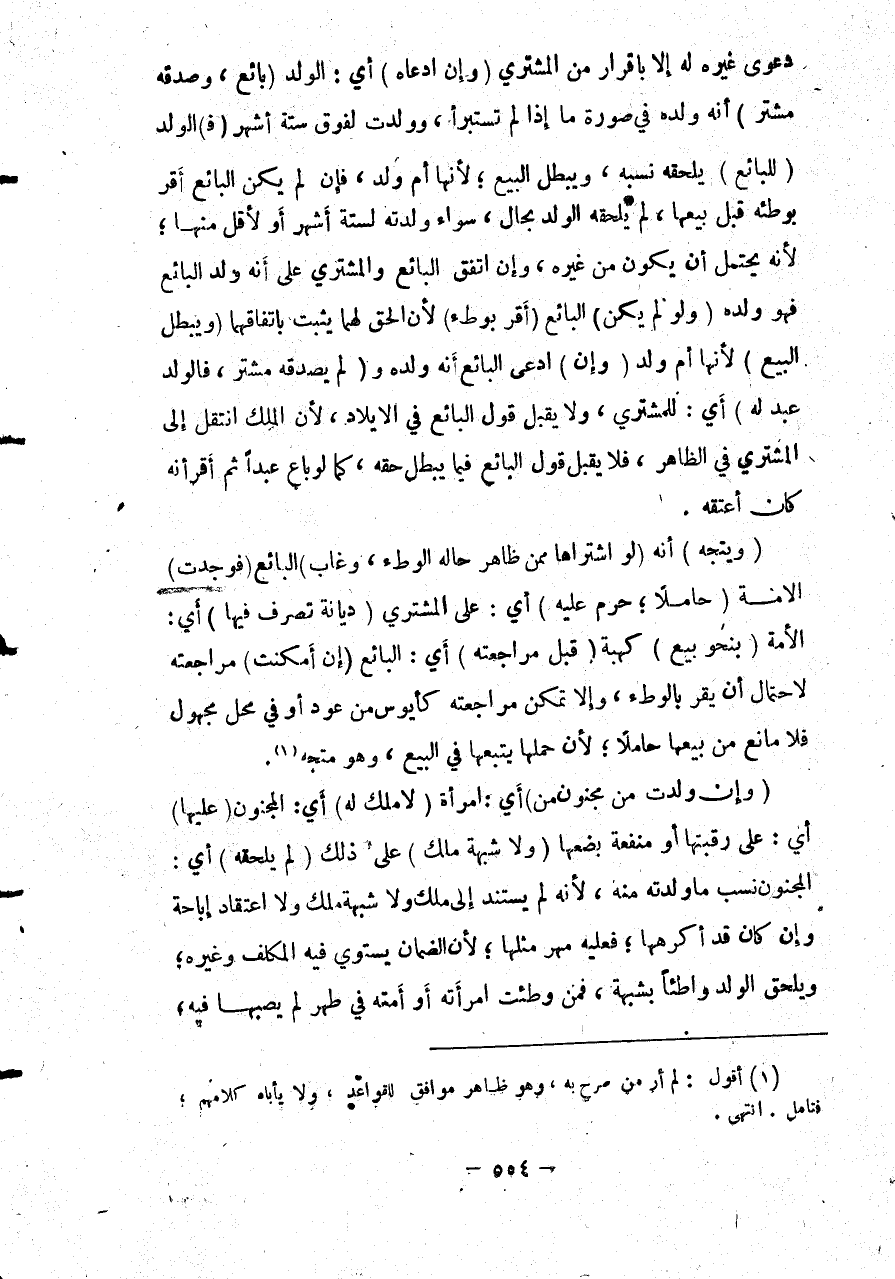 (وَيَتَّجِهُ) أَنَّهُ (لَوْ اشْتَرَاهَا مِمَّنْ ظَاهِرُ حَالِهِ الْوَطْءُ، وَغَابَ) الْبَائِعُ (فَوُجِدَتْ) الْأَمَةُ (حَامِلًا؛ حَرُمَ عَلَيْهِ) أَيْ: عَلَى الْمُشْتَرِي (دَيَّانَةً تَصَرُّفٌ فِيهَا) أَيْ: الْأَمَةِ (بِنَحْوِ بَيْعٍ) كَهِبَةٍ (قَبْلَ مُرَاجَعَتِهِ) أَيْ: الْبَائِعِ (إنْ أَمْكَنَتْ) مُرَاجَعَتُهُ لِاحْتِمَالِ أَنْ يُقِرَّ بِالْوَطْءِ، وَإِلَّا تُمْكِنُ مُرَاجَعَتُهُ كَأَيُوسٍ مِنْ عَوْدٍ أَوْ فِي مَحَلٍّ مَجْهُولٍ فَلَا مَانِعَ مِنْ بَيْعِهَا حَامِلًا؛ لِأَنَّ حَمْلَهَا يَتْبَعُهَا فِي الْبَيْعِ، وَهُوَ مُتَّجِهٌ.