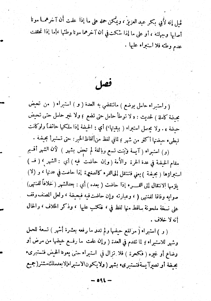 فَصْلٌ: (وَاسْتِبْرَاءُ حَامِلٍ بِوَضْعِ) مَا تَنْقَضِي بِهِ الْعِدَّةُ (وَ) اسْتِبْرَاءُ (مَنْ تَحِيضُ بِحَيْضَةٍ كَامِلَةٍ) لِحَدِيثِ: «لَا تُوطَأُ حَامِلٌ حَتَّى تَضَعَ؛ وَلَا غَيْرُ حَامِلٍ حَتَّى تَحِيضَ حَيْضَةً.» وَلَا يَحْصُلُ اسْتِبْرَاءٌ (بِبَقِيَّتِهَا) أَيْ: الْحَيْضَةِ إذَا مَلَكَهَا حَائِضًا وَلَوْ كَانَتْ تُبْطِئُ حَيْضَتَهَا أَكْثَرَ مِنْ شَهْرٍ؛ لِمَا فِي لَفْظٍ مِنْ أَلْفَاظِ الْخَبَرِ: حَتَّى تُسْتَبْرَأَ بِحَيْضَةٍ.