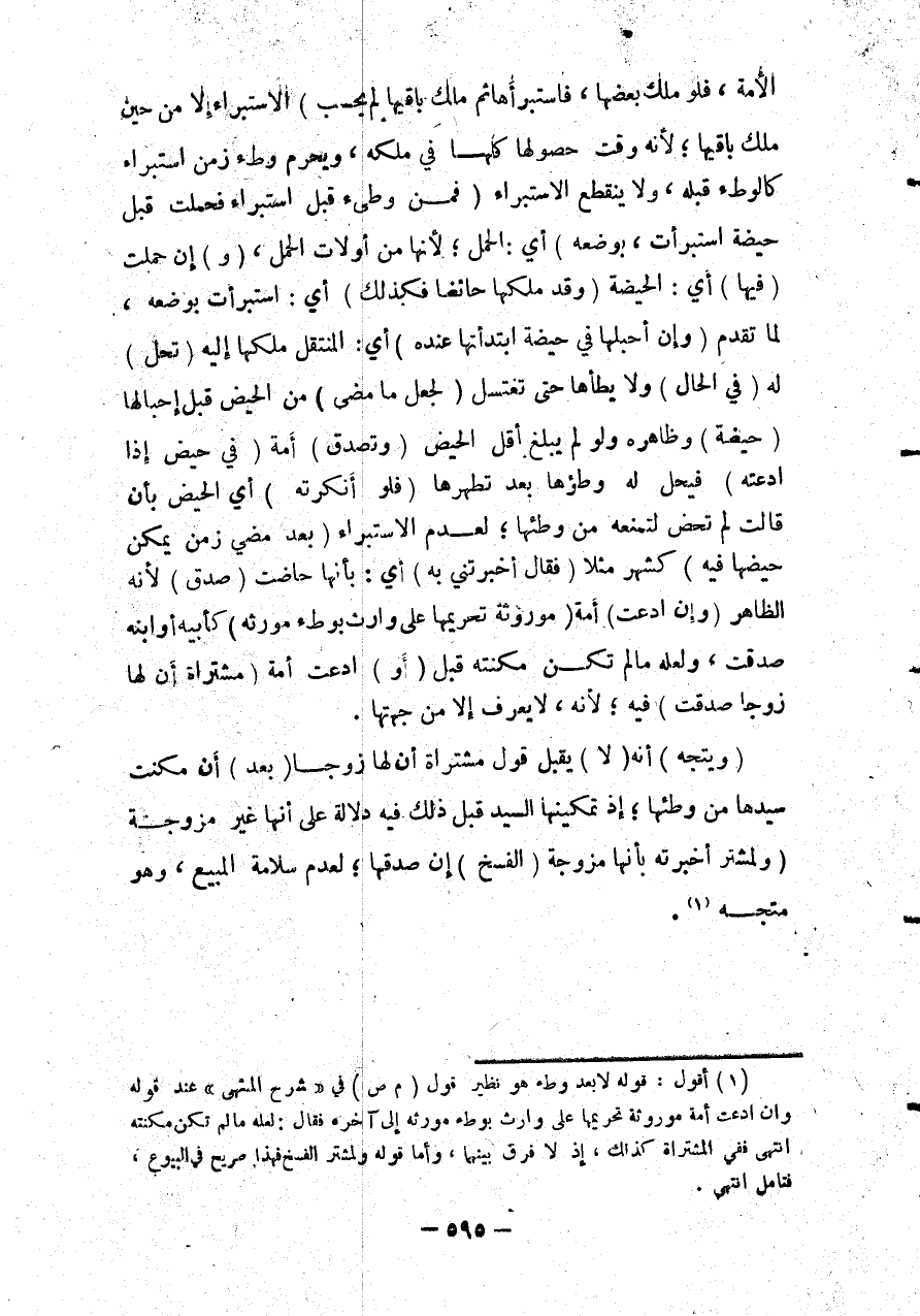 الْأَمَةِ، فَلَوْ مَلَكَ بَعْضَهَا، فَاسْتَبْرَأَهَا ثُمَّ مَلَكَ بَاقِيهَا لَمْ يُحْسَبْ) الِاسْتِبْرَاءُ إلَّا مِنْ حِينِ مَلَكَ بَاقِيهَا؛ لِأَنَّهُ وَقْتُ حُصُولِهَا كُلِّهَا فِي مِلْكِهِ، وَيَحْرُمُ وَطْءٌ زَمَنَ اسْتِبْرَاءٍ كَالْوَطْءِ قَبْلَهُ، وَلَا يَنْقَطِعُ الِاسْتِبْرَاءُ (فَمَنْ وَطِئَ قَبْلَ اسْتِبْرَاءٍ فَحَمَلَتْ قَبْلَ حَيْضَةٍ اسْتَبْرَأَتْ، بِوَضْعِهِ) أَيْ: الْحَمْلِ؛ لِأَنَّهَا مِنْ أُولَاتِ الْحَمْلِ، (وَ) إنْ حَمَلَتْ (فِيهَا) أَيْ: الْحَيْضَةِ (وَقَدْ مَلَكَهَا حَائِضًا فَكَذَلِكَ) أَيْ: اسْتَبْرَأَتْ بِوَضْعِهِ، لِمَا تَقَدَّمَ (وَإِنْ أَحْبَلَهَا فِي حَيْضَةٍ ابْتَدَأَتْهَا عِنْدَهُ) أَيْ: الْمُنْتَقِلِ مِلْكُهَا إلَيْهِ (تَحِلُّ) لَهُ (فِي الْحَالِ) وَلَا يَطَؤُهَا حَتَّى تَغْتَسِلَ (لِجَعْلِ مَا مَضَى) مِنْ الْحَيْضِ قَبْلَ إحْبَالِهَا (حَيْضَةً) وَظَاهِرُهُ وَلَوْ لَمْ يَبْلُغْ أَقَلَّ الْحَيْضِ (وَتُصَدَّقُ) أَمَةٌ (فِي حَيْضٍ إذَا ادَّعَتْهُ) فَيَحِلُّ لَهُ وَطْؤُهَا بَعْدَ تَطَهُّرِهَا (فَلَوْ أَنْكَرَتْهُ) أَيْ الْحَيْضَ بِأَنْ قَالَتْ لَمْ تَحِضْ لِتَمْنَعَهُ مِنْ وَطْئِهَا؛ لِعَدَمِ الِاسْتِبْرَاءِ (بَعْدَ مُضِيِّ زَمَنٍ يُمْكِنُ حَيْضُهَا فِيهِ) كَشَهْرٍ مَثَلًا (فَقَالَ أَخْبَرَتْنِي بِهِ) أَيْ: بِأَنَّهَا حَاضَتْ (صُدِّقَ) لِأَنَّهُ الظَّاهِرُ.