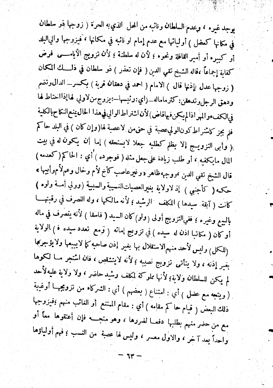 يُوجَدْ غَيْرُهُ، وَعُدِمَ السُّلْطَانُ وَنَائِبُهُ مِنْ الْمَحَلِّ الَّذِي بِهِ الْحُرَّةُ (زَوَّجَهَا ذُو سُلْطَانٍ فِي مَكَانِهَا كَعَضْلِ) أَوْلِيَائِهَا مَعَ عَدَمِ إمَامٍ أَوْ نَائِبِهِ فِي مَكَانِهَا، فَيُزَوِّجُهَا وَالِي الْبَلَدِ أَوْ كَبِيرُهُ أَوْ أَمِيرُ الْقَافِلَةِ وَنَحْوِهِ؛ لِأَنَّ لَهُ سَلْطَنَةً؛ لِأَنَّ تَزْوِيجَ الْأَيَامَى فَرْضُ كِفَايَةٍ إجْمَاعًا، قَالَهُ الشَّيْخُ تَقِيُّ الدِّينِ (فَإِنْ تَعَذَّرَ) ذُو سُلْطَانٍ فِي ذَلِكَ الْمَكَانِ (زَوَّجَهَا عَدْلٌ بِإِذْنِهَا قَالَ) الْإِمَامُ (أَحْمَدُ فِي دِهْقَانِ قَرْيَةٍ) بِكَسْرِ - الدَّالِ وَتُضَمُّ وَدَهَقَ الرَّجُلُ وَتَدَهْقَنَ: كَثُرَ مَالُهُ - (أَيْ: رَئِيسِهَا -: يُزَوِّجُ مَنْ لَا وَلِيَّ لَهَا إذَا احْتَاطَ لَهَا فِي الْكُفْءِ وَالْمَهْرِ إذَا لَمْ يَكُنْ فِيهَا قَاضٍ) لِأَنَّ اشْتِرَاطَ الْوَالِي فِي هَذَا الْحَالِ يَمْنَعُ النِّكَاحَ بِالْكُلِّيَّةِ فَلَمْ يَجُزْ كَاشْتِرَاطِ كَوْنِ الْوَلِيِّ عَصَبَةً فِي حَقِّ مَنْ لَا عَصَبَةَ لَهَا.
