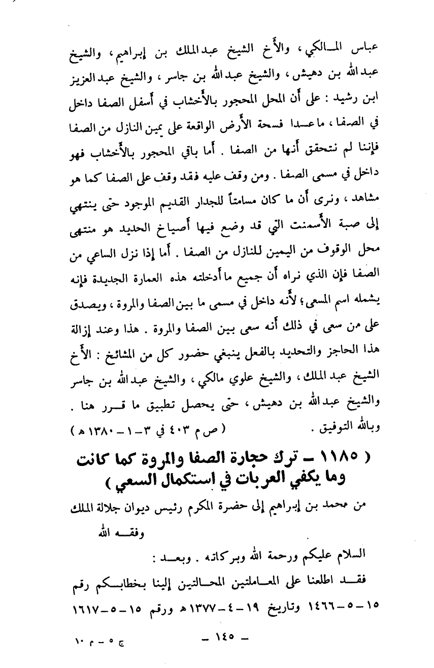 (1185 - ترك حجارة الصفا والمروة كما كانت وما يكفي العربات في استكمال السعي)