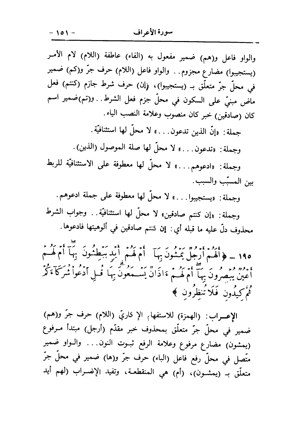 وعلامة الجزم حذف حرف العلة (أخرى) نعت لطائفة مرفوع مثله وعلامة الرفع الضمة المقدرة على الألف (لم) حرف نفي وقلب وجزم (يصلّوا) مضارع مجزوم وعلامة الجزم حذف النون ... والواو فاعل (الفاء) عاطفة (اللام) لام الأمر (يصلّوا) مضارع مجزوم وعلامة الجزم حذف النون ...