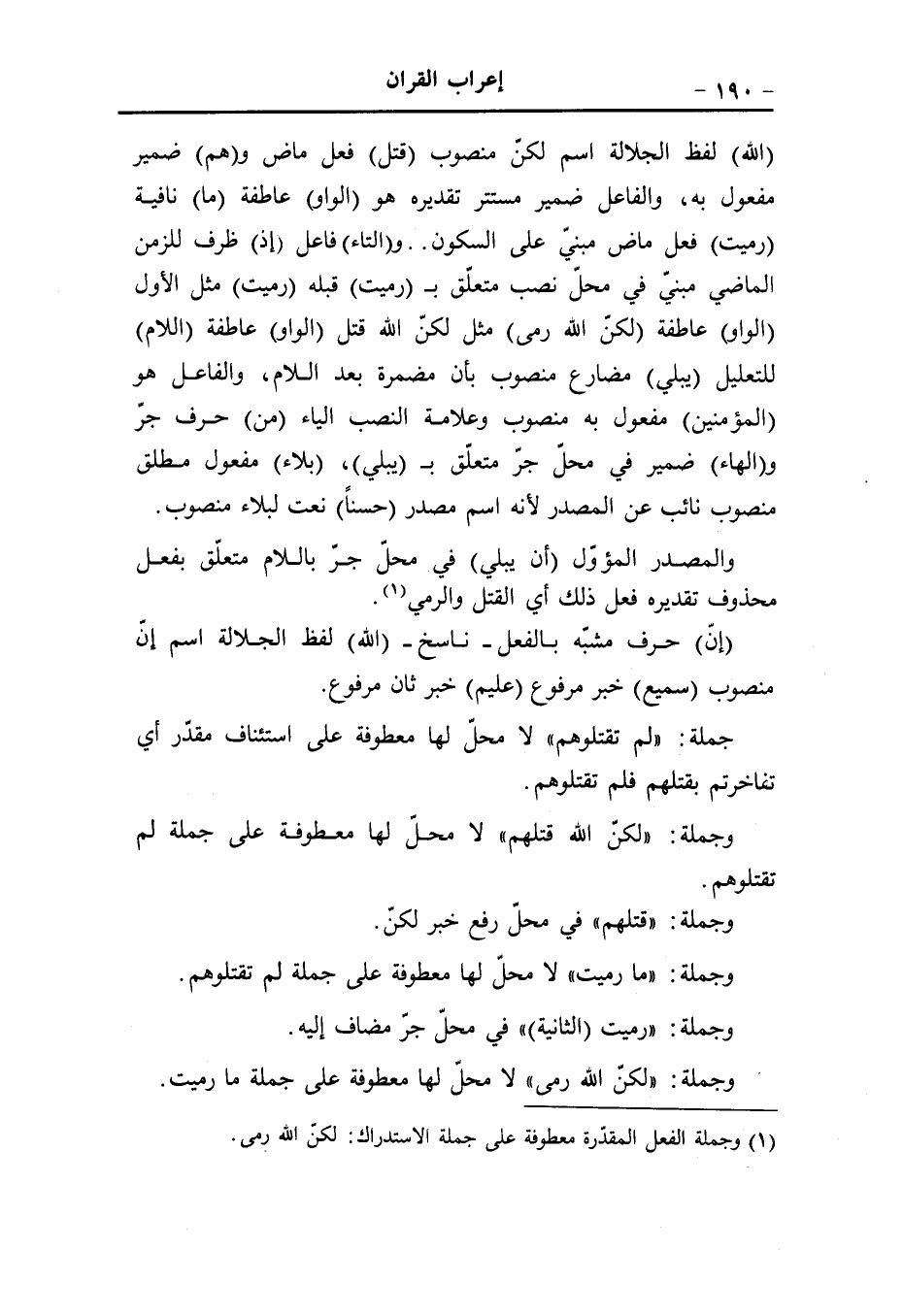 والواو فاعل (الواو) عاطفة (تتقوا) مضارع مجزوم معطوف على فعل تحسنوا ... والواو فاعل (الفاء) رابطة لجواب الشرط (إنّ الله كان) مرّ إعرابها «1» ، (الباء) حرف جرّ (ما) حرف مصدري «2» ، (تعلمون) مضارع مرفوع ... والواو فاعل.