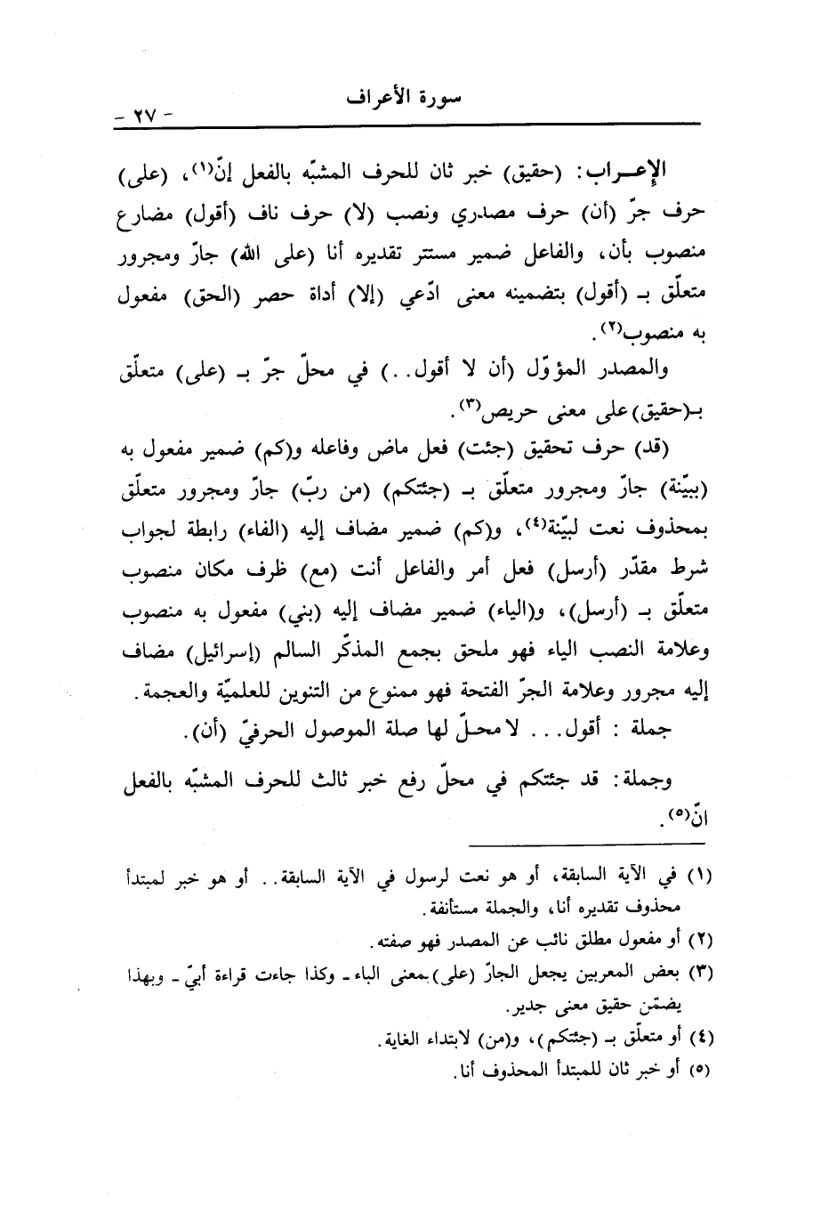 (3) يجوز أن يكون الجار أصليا فالجار والمجرور متعلقان بحافظات.