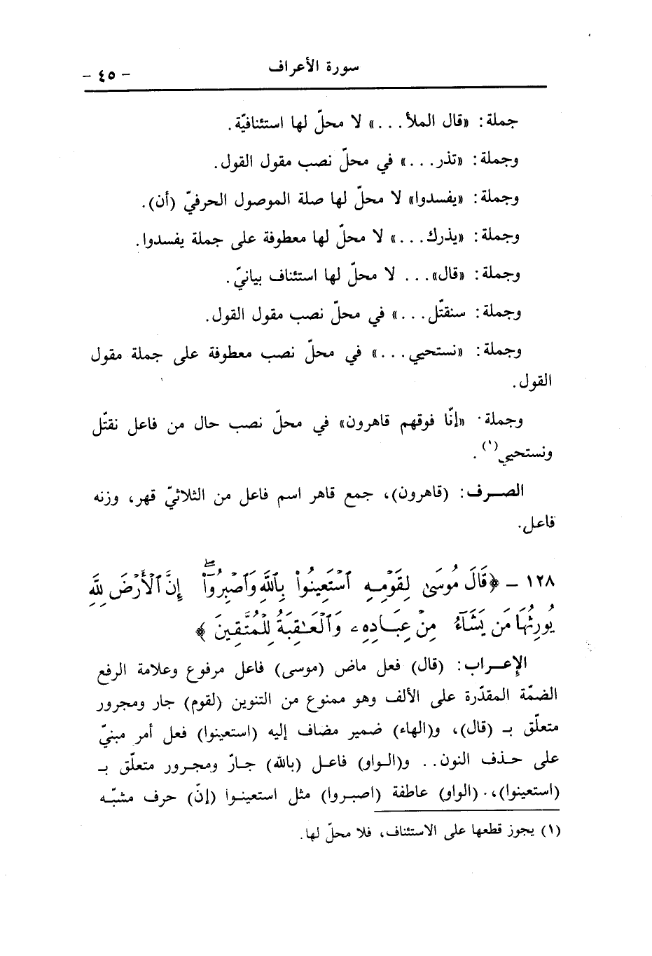 (1) يجوز أن تكون (إلّا) بمعنى غير، وحينئذ تصبح هي وما بعدها صفة لجنب، وقد ظهر أثر ذلك في كلمة عابري ... أي لا تقربوا الصلاة جنبا مقيمين غير عابري سبيل.