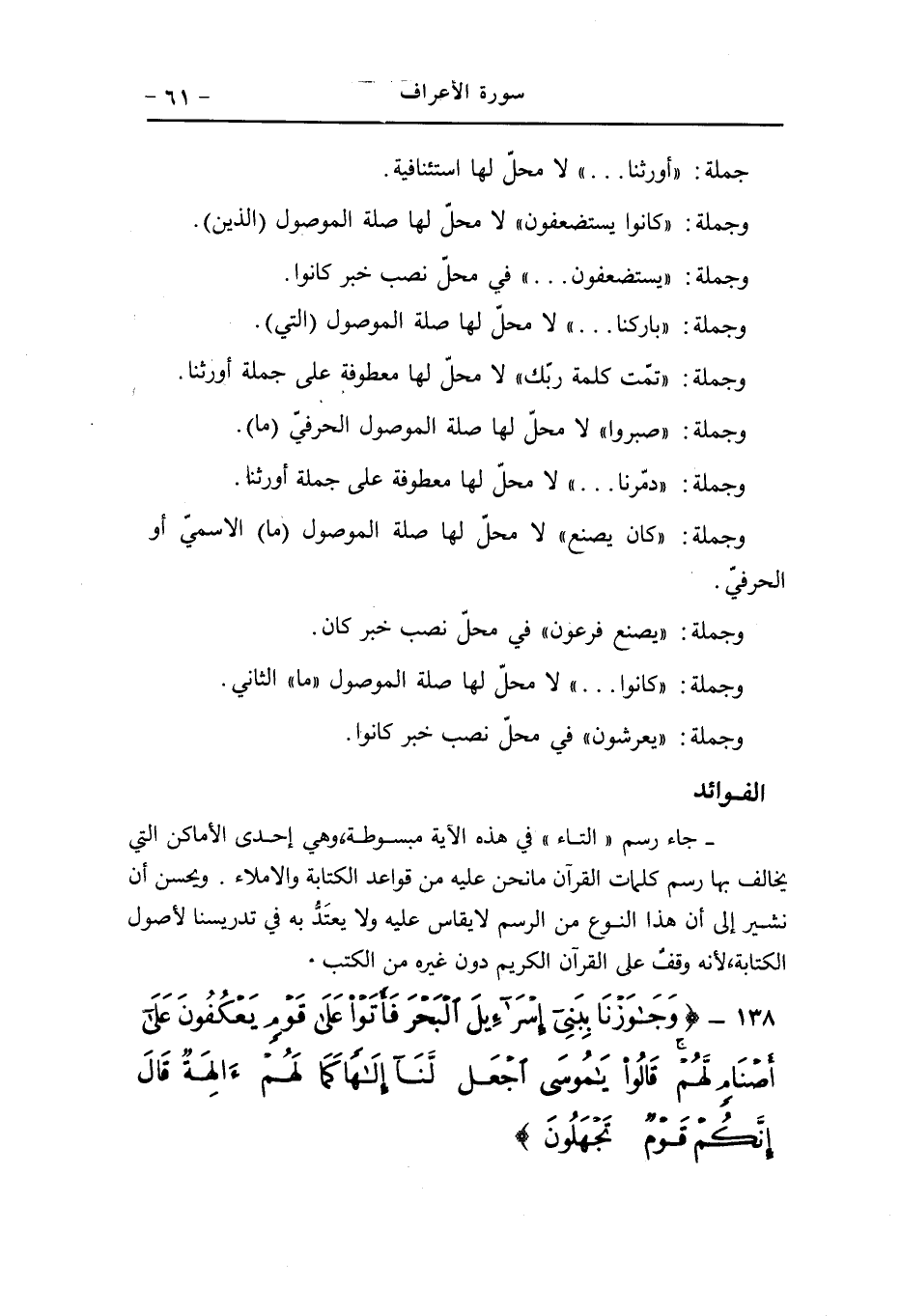 (52) أولاء مثل الأول و (الكاف) حرف خطاب (الذين) موصول في محل رفع خبر (لعن) فعل ماض و (هم) ضمير مفعول به (الله) لفظ الجلالة فاعل مرفوع (الواو) استئنافية (من) اسم شرط جازم مبني في محل نصب مفعول به مقدم (يلعن) مضارع مجزوم فعل الشرط وحرك بالكسر لالتقاء الساكنين (الله) مثل السابق (الفاء) رابطة لجواب الشرط (لن) حرف نفي ونصب (تجد) مضارع منصوب، والفاعل ضمير مستتر تقديره أنت (اللام) حرف جر و (الهاء) ضمير في محل جر متعلق ب (نصيرا) وهو المفعول الثاني لفعل تجد، أما الأول فمقدر أي أحدا.