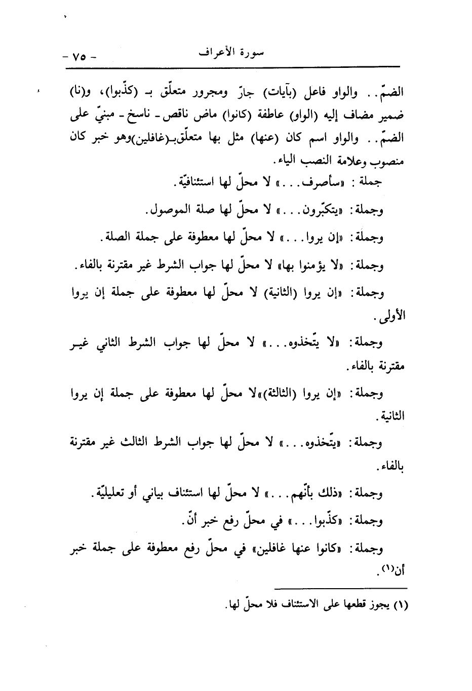 (61) (الواو) عاطفة (إذا) ظرف للزمن المستقبل متضمن معنى الشرط متعلّق ب (رأيت) ، قيل) فعل ماض مبني للمجهول (اللام) حرف جر و (هم ضمير في محل جر متعلق ب (قيل) ، (تعالوا) فعل أمر جامد مبني على حذف النون لاتصاله بواو الجماعة ... والواو فاعل (إلى ما) مثل بما متعلّق ب (تعالوا) ، (أنزل) فعل ماض (الله) لفظ الجلالة فاعل مرفوع (الواو) عاطفة (الرسول) مجرور بإلى متعلق ب (تعالوا) فهو معطوف على المجرور الأول (رأيت) فعل ماض مبني على السكون ... و (التاء) فاعل (المنافقين) مفعول به منصوب وعلامة النصب الياء (يصدّون) مضارع
