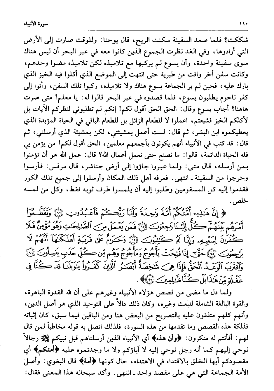) إِنَّ هَذِهِ أُمَّتُكُمْ أُمَّةً وَاحِدَةً وَأَنَاْ رَبُّكُمْ فَاعْبُدُونِ وَتَقَطَّعُواْ أَمْرَهُمْ بَيْنَهُمْ كُلٌّ إِلَيْنَا رَاجِعُونَ فَمَن يَعْمَلْ مِنَ الصَّالِحَاتِ وَهُوَ مُؤْمِنٌ فَلاَ كُفْرَانَ لِسَعْيِهِ وَإِنَّا لَهُ كَاتِبُونَ وَحَرَامٌ عَلَى قَرْيَةٍ أَهْلَكْنَاهَآ أَنَّهُمْ لاَ يَرْجِعُونَ حَتَّى إِذَا فُتِحَتْ يَأْجُوجُ وَمَأْجُوجُ وَهُمْ مِّن كُلِّ حَدَبٍ يَنسِلُونَ وَاقْتَرَبَ الْوَعْدُ الْحَقُّ فَإِذَا هِيَ شَاخِصَةٌ أَبْصَارُ الَّذِينَ كَفَرُواْ يوَيْلَنَا قَدْ كُنَّا فِي غَفْلَةٍ مِّنْ هَذَا بَلْ كُنَّا ظَالِمِينَ ( ( )