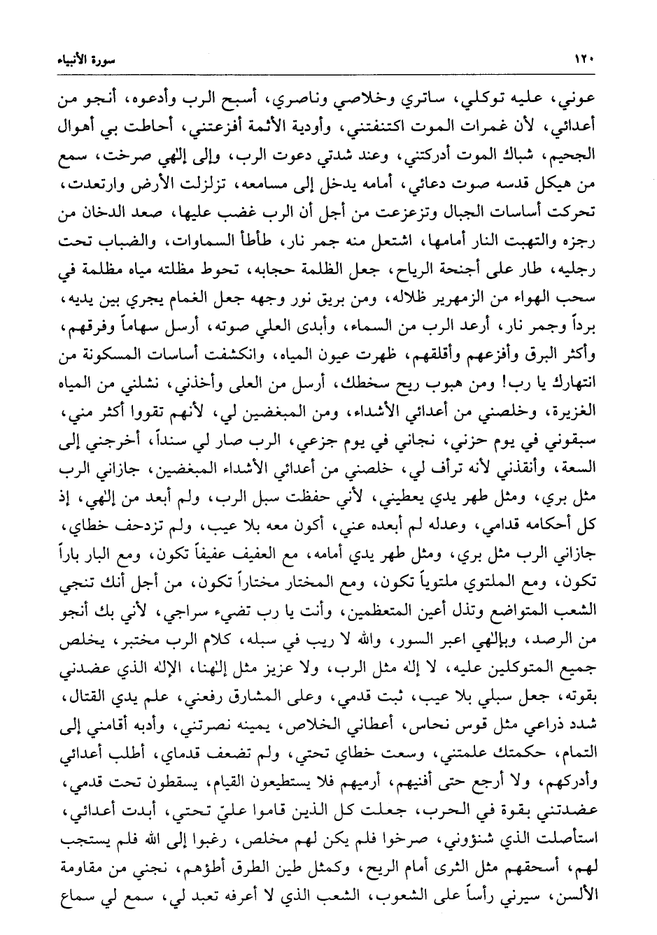 عوني ، عليه توكلي ، ساتري وخلاصي وناصري ، أسبح الرب وأدعوه ، أنجو من أ " دائي ، لأن غمرات الموت اكتنفتني ، وأودية الأثمة أفزعتني ، أحاطت بي أهوال الجحيم ، شباك الموت أدركتني ، وعند شدتي دعوت الرب ، وإلى إلهي صرخت ، سمع من هيكل قدسه صوت دعائي ، أمامه يدخل إلى مسامعه ، تزلزلت الأرض وارتعدت ، تحركت أساسات الجبال وتزعزعت من أجل أن الرب غضب عليها ، صعد الدخان من رجزه والتهبت النار أمامها ، اشتعل منه جمر النا ، طأطأ السماوات ، والضباب تحت رجليه ، طار على أجنحة الرياح ، جعل الظلمة حجابه ، تحوط مظلته مياه مظلمة في سحب الهوا من الزمهرير ظلاله ، ومنبريق نور وجهه جعل الغمام يجري بين يديه ، برداً وجمر نار ، ارعد الرب من السماء ، وأبدى العي صوته ، أرسل سهاماً وفرقهم ، وأكثر البرق وافزعهم وأقلقهم ، ظهرت عيون المياه ، وانكشفت أساسات المسكونة من انتهارك يا رب ومن هبوب الريح سخطك ، أرسل من العلى وأخذني ، نشلني من المياه الغزيرة ، وخلصني من أعدائي الأشداء ، ومن المبغضين لي ، لأنهم تقووا أكثر مني ، سبقوني في يوم حزني ، نجاني في يوم جزعي ، الرب صار لي سنداً ، أ رجني إلى السعة ، وأنقذني لأنه ترأف لي ، خلصني من أعدائي المبغضين ، جازاني الرب مثل بري ، ومثل طهر يدي يعطيني ، لأني حفظت سبل الرب ، ولم أبعد من إلهي ، إذ كل أحكامه قدامي ، وعدله لم ابعده عني ، أكون معه بلا عيب ، ولم تزدحف خطاي ، جازاني الب مثل بري ، ومثل طهر يدي أمامه ، مع العفيف عفيفاً تكون ، من البار أنك تنجي تكون ، ومع الملتوي ملتوياً تكون ، مع المختار مختاراص تكون ، من أجل أنك تنجي الشعب المتواضع وتذل أعين المتعظمين ، وأنت يا رب تضيء سراجي ، لأني بك أنجو من الرصد ، وبإلهي أعبر السور ، والله لا ريب في سبله ، كلام الرب مختبر ، يخلص جميع المتوكلين عليه ، لا إله مثل الرب ، ولا عزبز مثل إلهنا ، الإله الذي عضدني بقوته ، جعل سبيلي با لعيب ، ثبت قدمي ، وعلى المشارق رفعني ، علم يدي القتال ، شدد ذراعي مثل قوس نحاس ، أعطاني الخلاص ، يمينه نصرتني ، وأدبه أقامني إلى التمام ، حكمتك علمتني ، وسعت خطاي تحتي ، ولم تضعف قدماي ، أطلب أعدائي وأدركهم ، ولا أرجع حتى أفنيهم ، أرميهم فلا يستطيعون القيام ، يسقطون تحت قدمي ، عضدتني بقوة فب الحرب ، جعلت كل الذي قاموا عليّ تحتي ، أبدت أعدائي استأصلت الذي سنؤوني ، صرخوا فلم يمن لهم مخلص ، رغبوا إلى الله فلم يستجب لهم ، أسحقهم مثل الثرى أمام الريح ، وكمثل طين الطرق أطؤهم ، نجني من مقاومة الألسن ، سيرني راساً على الشعوب ، الشعب الذي لا أعرفه تعبد لي ، سمع لي سماع