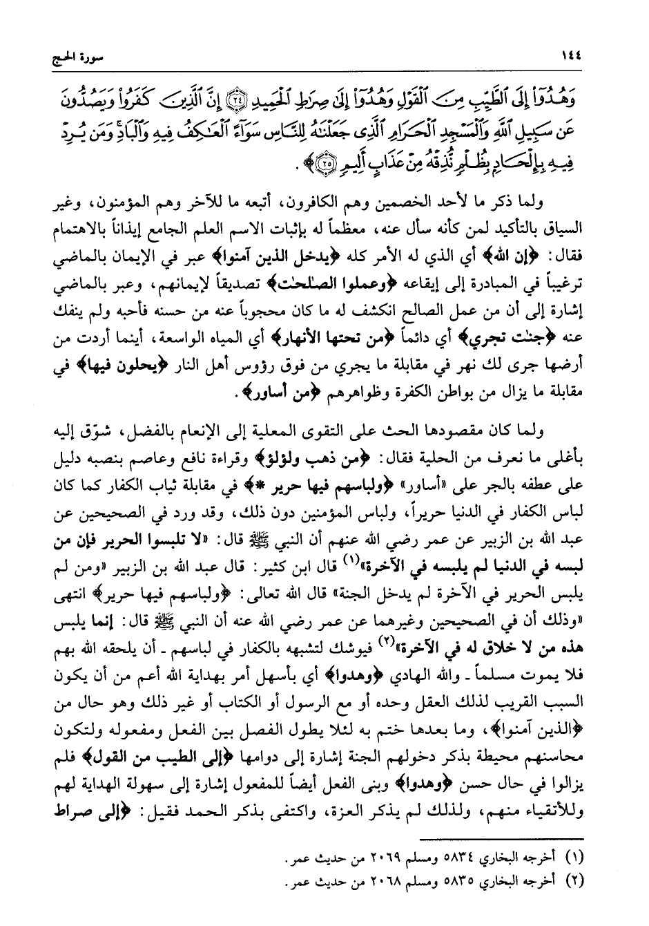 وَهُدُواْ إِلَى الطَّيِّبِ مِنَ الْقَوْلِ وَهُدُواْ إِلَى صِرَاطِ الْحَمِيدِ إِنَّ الَّذِينَ كَفَرُواْ وَيَصُدُّونَ عَن سَبِيلِ اللَّهِ وَالْمَسْجِدِ الْحَرَامِ الَّذِي جَعَلْنَاهُ لِلنَّاسِ سَوَآءً الْعَاكِفُ فِيهِ وَالْبَادِ وَمَن يُرِدْ فِيهِ بِإِلْحَادٍ بِظُلْمٍ نُّذِقْهُ مِنْ عَذَابٍ أَلِيمٍ ) 73
