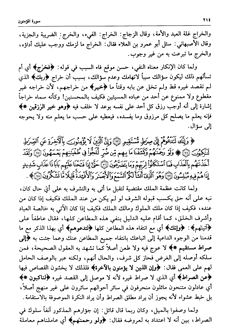 المؤمنون : ( 73 - 78 ) وإنك لتدعوهم إلى. .. . .