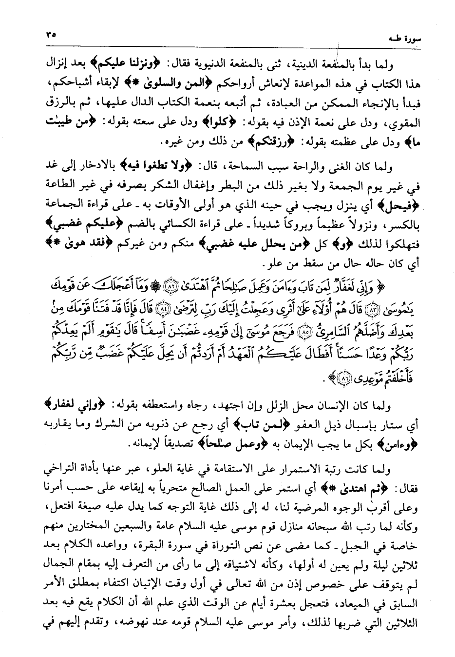 ) وَإِنِّي لَغَفَّارٌ لِّمَن تَابَ وَآمَنَ وَعَمِلَ صَالِحَاً ثُمَّ اهْتَدَى وَمَآ أَعْجَلَكَ عَن قَومِكَ يمُوسَى قَالَ هُمْ أُوْلاءِ عَلَى أَثَرِي وَعَجِلْتُ إِلَيْكَ رَبِّ لِتَرْضَى قَالَ فَإِنَّا قَدْ فَتَنَّا قَوْمَكَ مِن بَعْدِكَ وَأَضَلَّهُمُ السَّامِرِيُّ فَرَجَعَ مُوسَى إِلَى قَوْمِهِ غَضْبَانَ أَسِفاً قَالَ يقَوْمِ أَلَمْ يَعِدْكُمْ رَبُّكُمْ وَعْداً حَسَناً أَفَطَالَ عَلَيْكُمُ الْعَهْدُ أَمْ أَرَدتُّمْ أَن يَحِلَّ عَلَيْكُمْ غَضَبٌ مِّن رَّبِّكُمْ فَأَخْلَفْتُمْ مَّوْعِدِي ( ( )