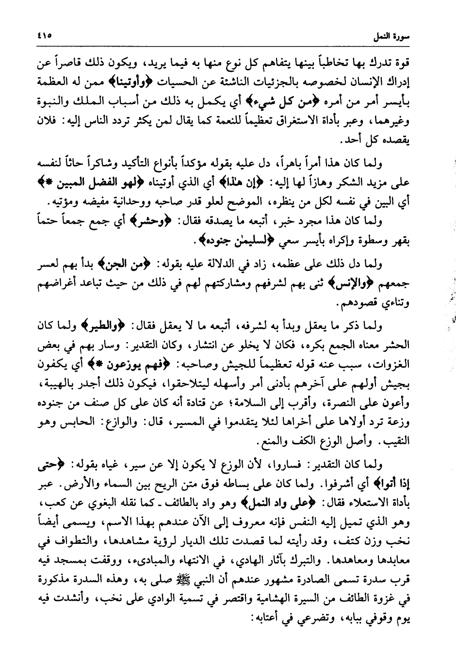 قوة تدرك بها تخاطباً بينها يتفاهم كل نوع منها بع فيما يريد ، ويكون ذلك قاصراً عن إدراك الإنسان لخصوصه بالجزئيات الناشئة عن الحسيات ) وأوتينا ( ممن له العظمة بأيسر أمر من أمره ) من كل شيء ) أي يكمل به ذلك من اسباب الملك والنبوة وغيرهما ، وعبر بأداة الاستغراق تعظيماً للنعمة كما يقال لمن يكثر تردد الناس إليه : فلان يقصده كل أحد .