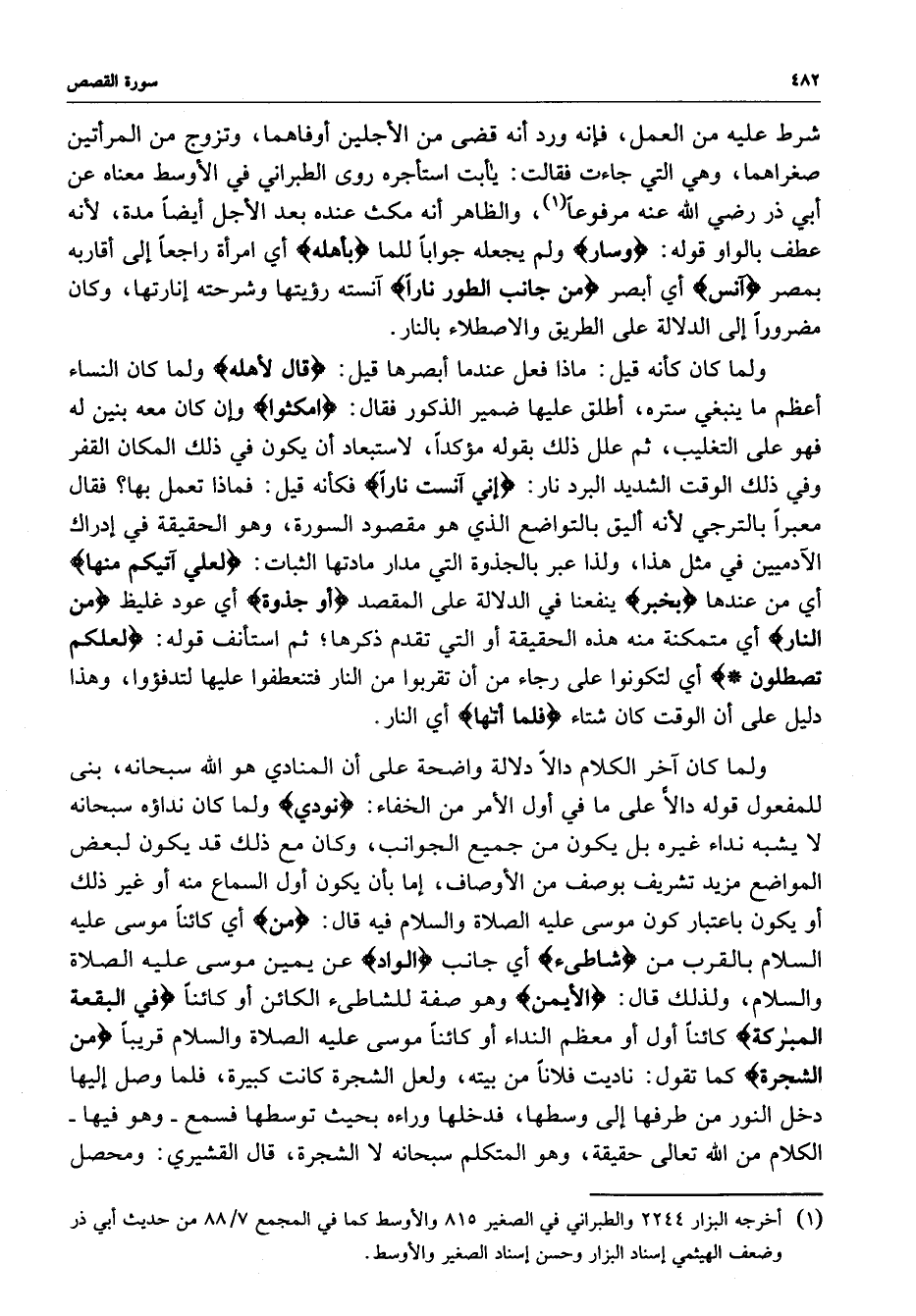شرط عليه من العمل ، فإنه ورد أنه قضى من الأجلين أوفاهما ، وتزوج من المرأتين صغراهما ، وهي التي جاءت فقالت : يا أبت استأجره روى الطبراني في الوسط معناه عن أبي ذر رضي الله عنه مرفوعاً ، والظاهر أنه مكث عنده بعد الأجل أيضاً مدة ، لأنه عطف بالواو قوله : ( وسار ( ولم يجعله جواباً للما ) بأهله ) أي امرأة راجعاً إلى أقاربه بمصر ) آنس ( اي أبصر ) من جانب الطور ناراً ( آنسته رؤيتها وشرحته إنارتهان وكان مضروراً إلى الدلالة على الطريق والاصطلاء بالنار .