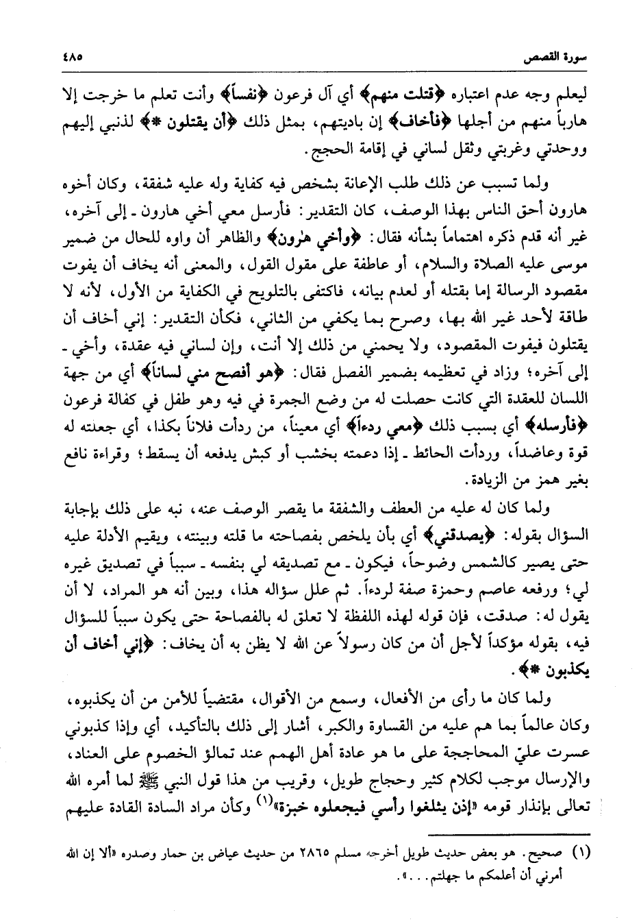 ليعلم وجه عدم اعتباره ) قتلت منهم ) أي آل فرعون ) نفساً ( وأنت تعلم ما خرجت إلا هارباً منهم من أجلها ) فأخاف ( إن باديتهم ، بمثل ذلك ) أن يقتلون ( لذنبي إليهم ووحدتي وغربتي وثقل لساني في إقامة الحجج .