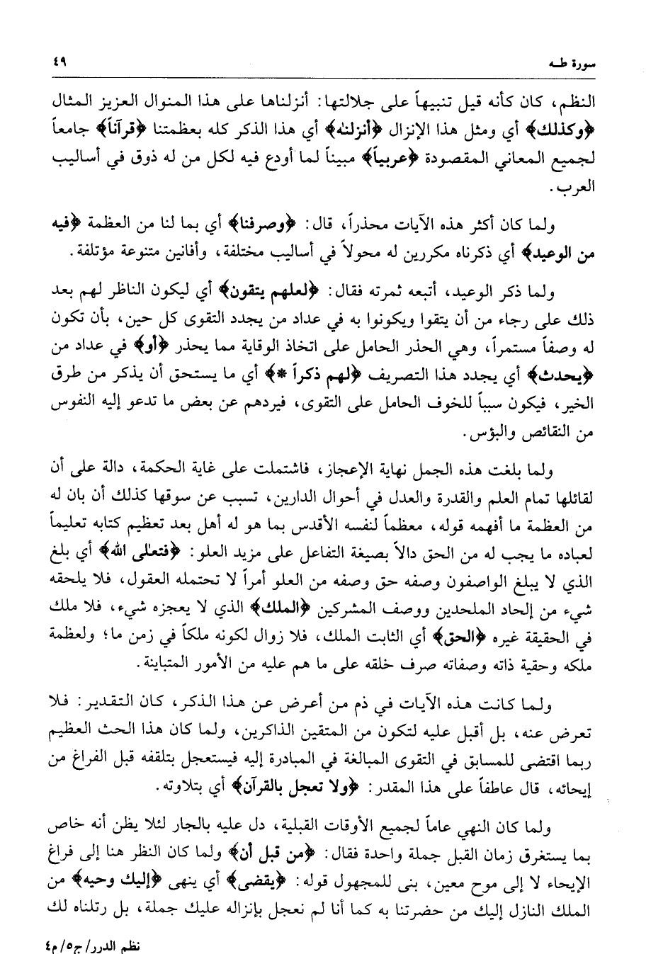 كتاب نظم الدرر فى تناسب الآيات والسور - العلمية (اسم الجزء: 5)