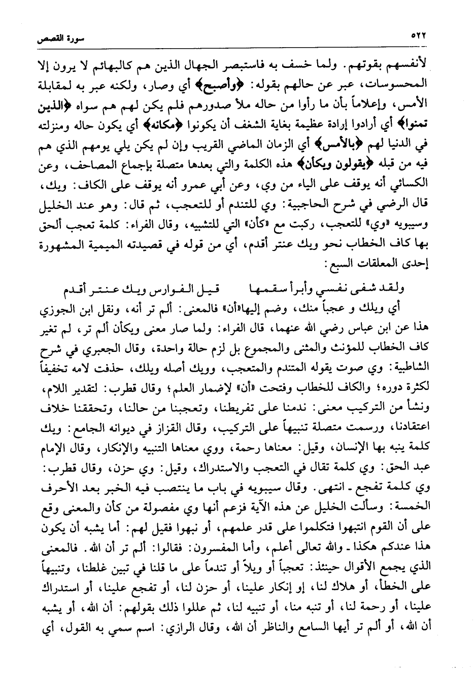وقال سيبويه في باب ما ينتصب فيه الخبر بعد الأحرف الخمسة : وسألت الخليل عن هذه الآية فزعم أنها وي مفصولة من كأن والمعنى وقع على أن القوم انتبهوا فتكلموا على قدر علمهم ، أو نبهوا فقيل لهم : أما يشبه أن يكون هذا عندكم هكذا والله تعالى أعلم ، وأما الفسرون : فقالوا : ألم تر أن الله .