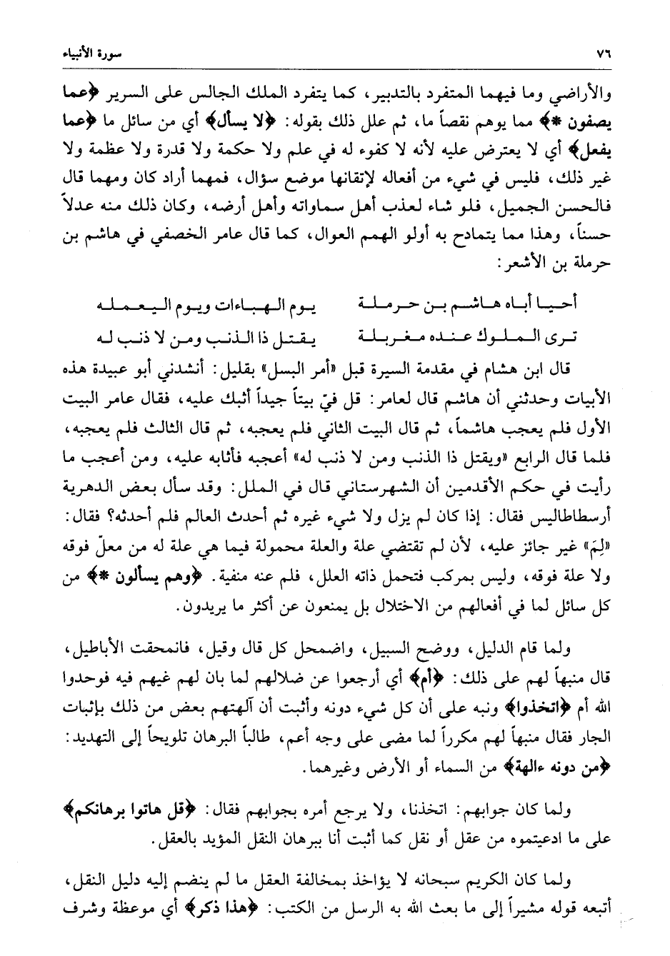 قال ابن هشام في مقدمة السيرة قبل ( أمر البسل ) بقليل : أأنشدني أبو عبيدة هذه الأبيات وحدثيني أن هاشماً ، ثم قال البيت الثاني فلم يعجبه ، ثم قال الثالث فلم يعجبه ، فلما قال الرابع ( ويقتل ذا الذنب ومن لا ذنب له ) أعجبه فأثابه عليه ، ومن أعجب ما رأيت في حكم الأقدمين أن الشهر ستاني قال في الملل : وقد سأل بعض الدهرية أرسطاطاليس فقال : إذا كان لم يزل ولا شيء غيره ثم أحدث العالم فلم أحدثه ؟ فقال : ( لِمَ ) غير جائز عليه ، لأن لم تقتضي علة والعلة محمولة فيما هي علة له من معلّ فوقه ولا علة فوقه ، وليس بمركب فتحمل ذاته العلل ، فلم عنه منفية .