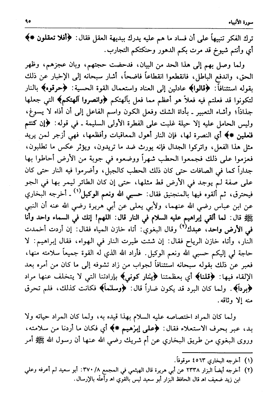 ولما كان البرد قد يكون ضاراً قال : ( وسلاماً ( فكانت كذلك ، فلم تحرق منه إلا وثاقه .
