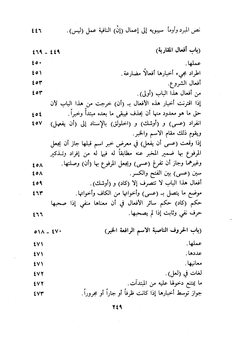 نص المبرد وأومأ سيبويه إلى إعمال "إن" النافية عمل "ليس" 446