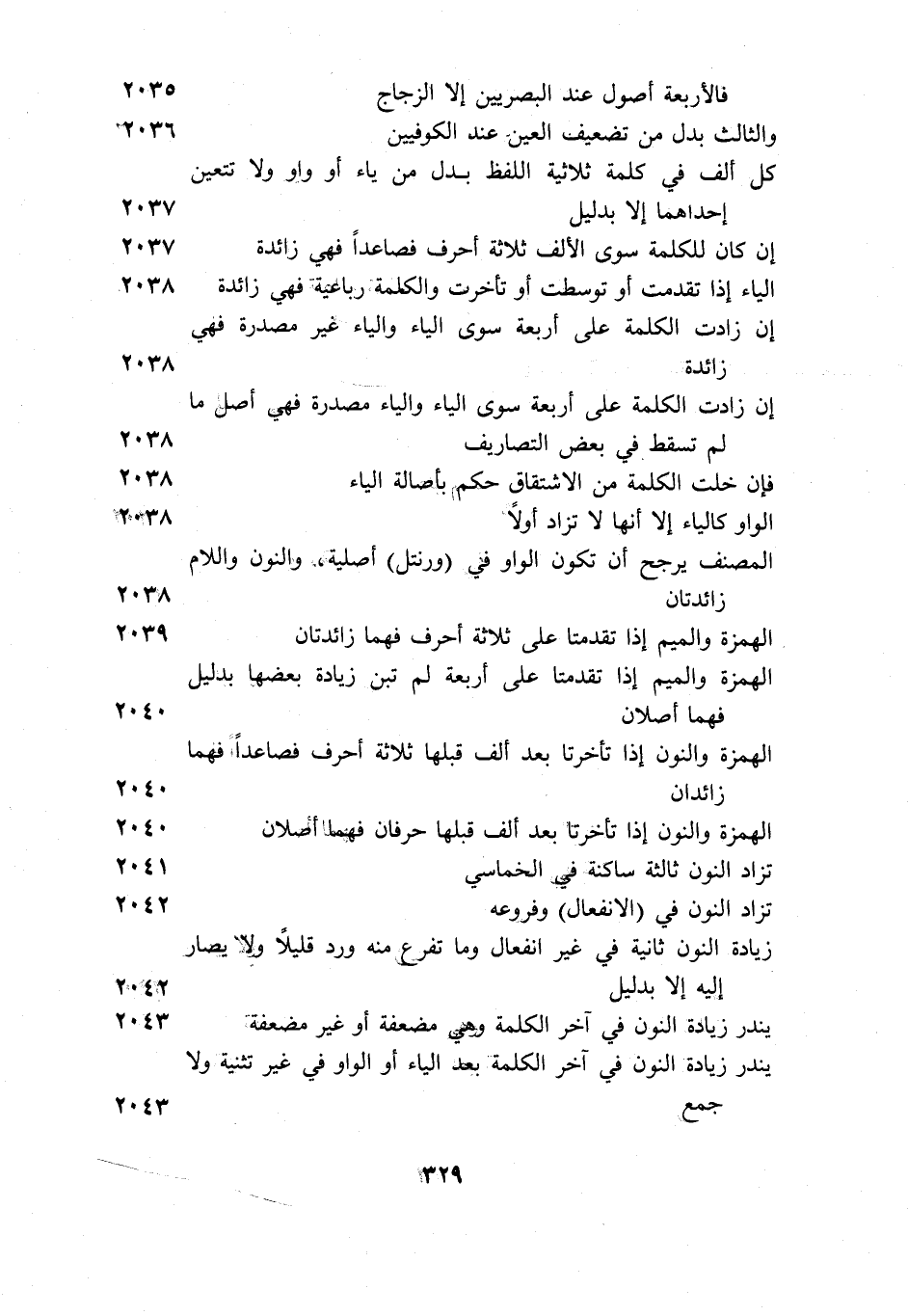 إن زادت الكلمة على أربعة سوى الياء والياء مصدرة فهي أصل ما لم تسقط في بعض التصاريف 2038