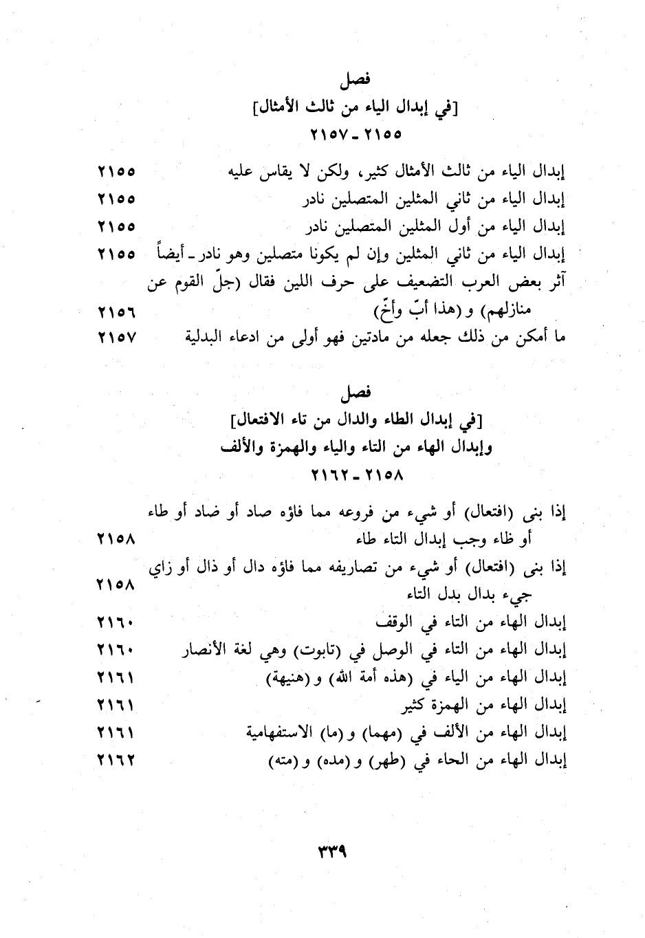 فصل "في إبدال الياء من ثالث الأمثال" 2155-2157