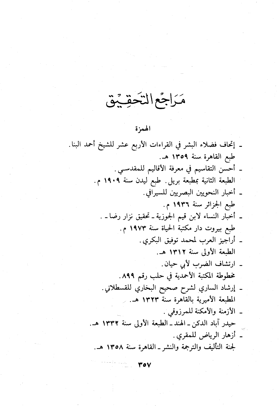 - أحسن التقاسيم في معرفة الأقاليم للمقدسي. الطبعة الثانية بمطبعة بريل. طبع ليدن سنة 1909م.