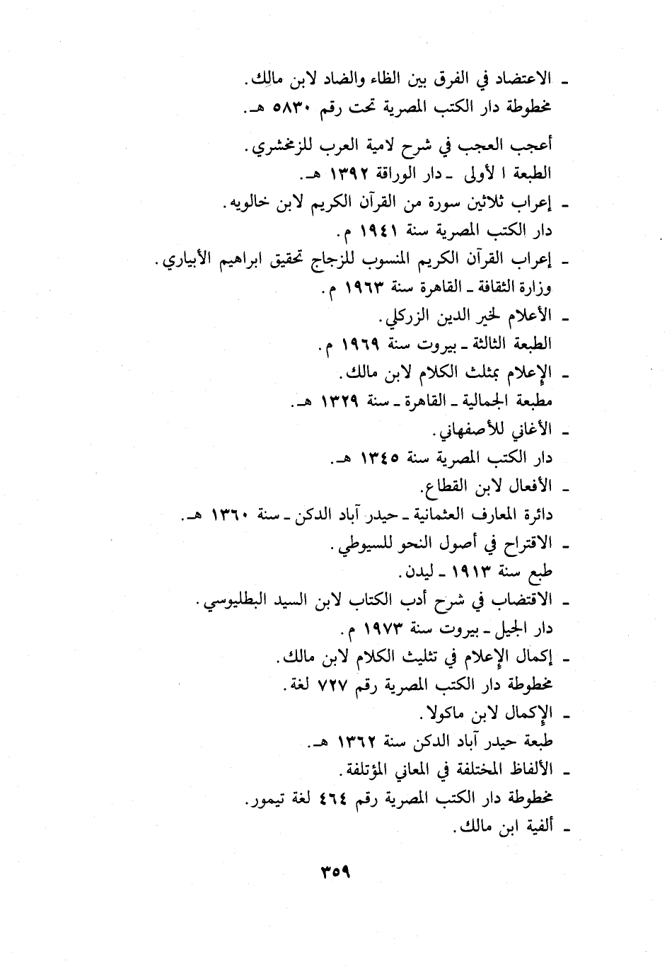 - إكمال الإعلام في تثليث الكلام لابن مالك. مخطوطة دار الكتب المصرية رقم 727 لغة.