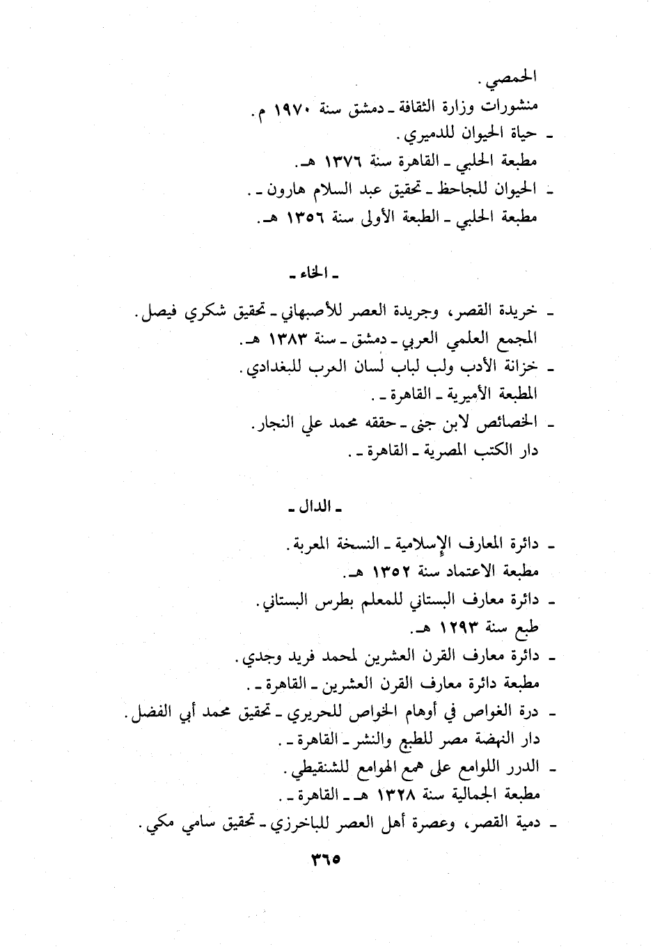- حياة الحيوان للدميري. مطبعة الحلبي -القاهرة سنة 1376هـ.