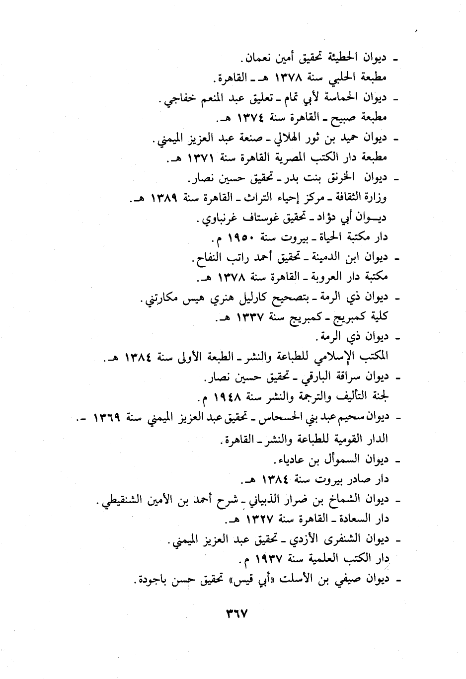 - ديوان الشنفرى الأزدي -تحقيق عبد العزيز دار الكتب العلمية سنة 1937م.