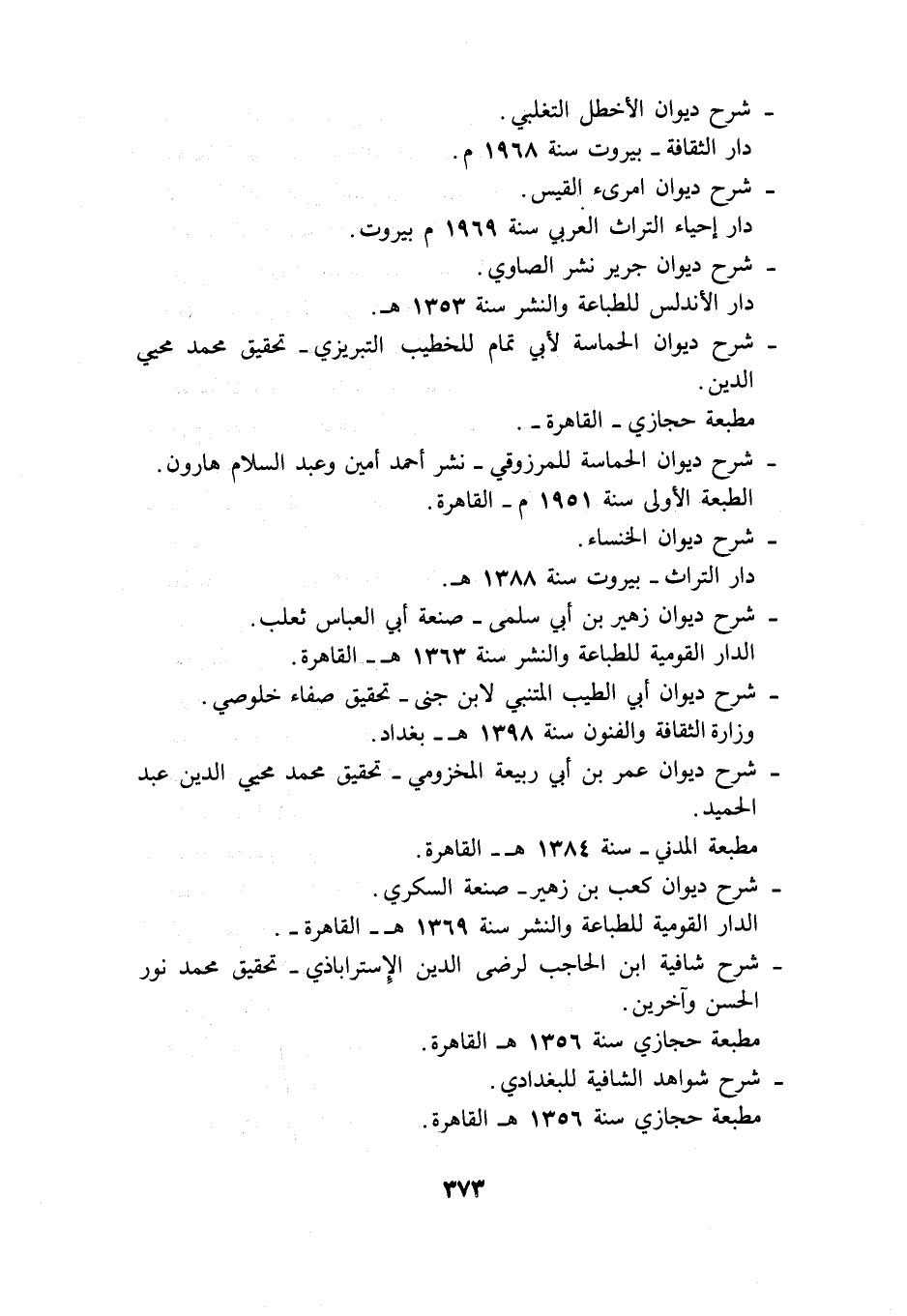 - شرح ديوان الحماسة لأبي تمام للخطيب التبريزي -تحقيق محمد محي الدين. مطبعة حجازي -القاهرة.