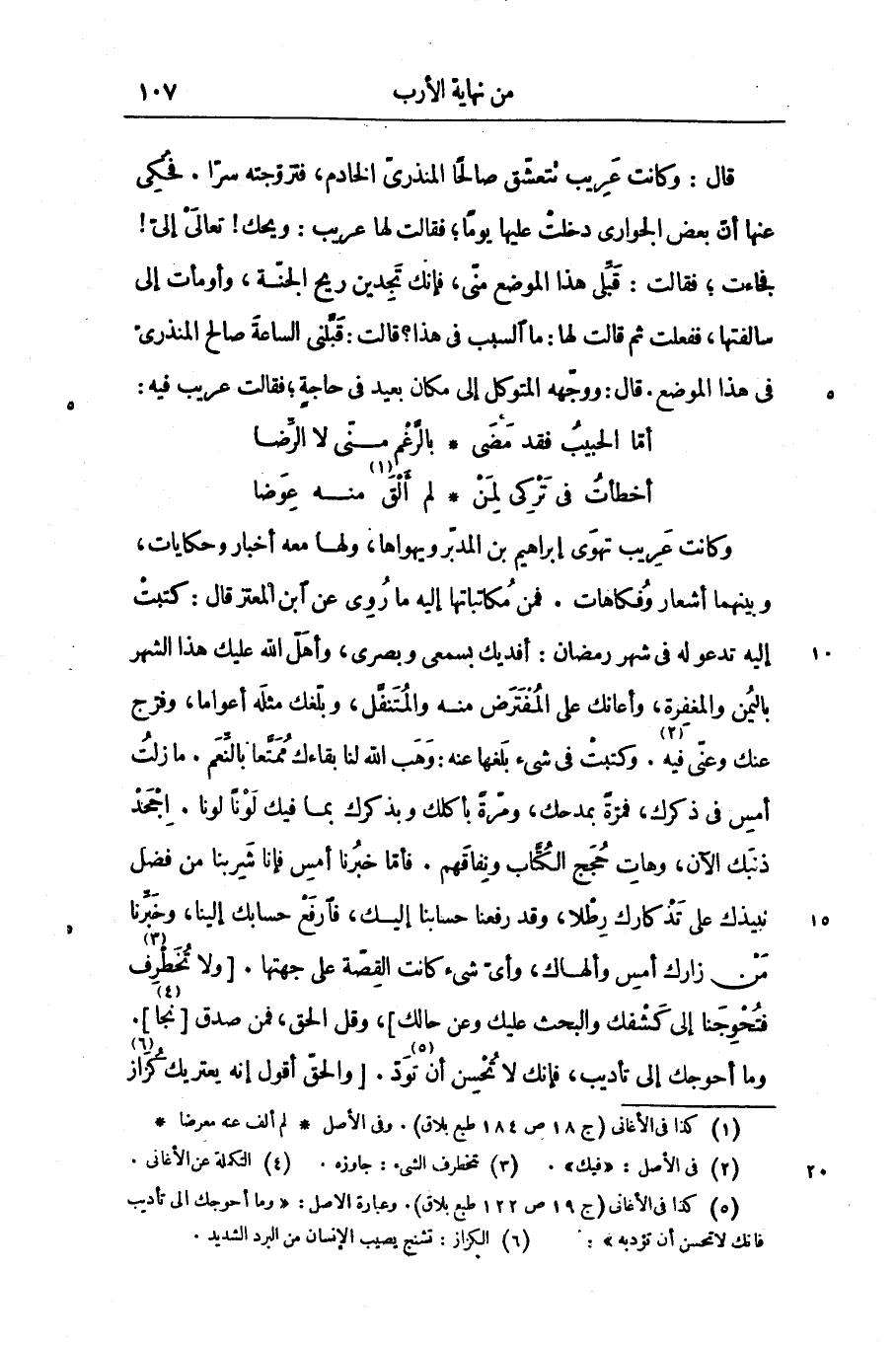 [5] كذا فى الأغانى (ج 19 ص 122 طبع بلاق) . وعبارة الاصل: «وما أحوجك الى تأديب فانك لا تحسن أن تؤدبه» :