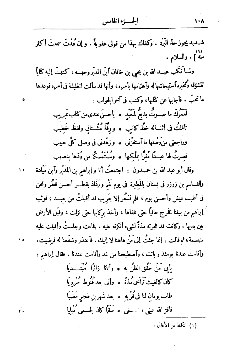 ولما نكب عبد الله بن يحيى بن خاقان ابن المدبّر وحبسه، كتبت إليه كتابا تتشوّقه وتخبره استيحاشها له واهتمامها بأمره، وأنها قد سألت الخليفة فى أمره فوعدها ما تحبّ. فأجابها عن كتابها، وكتب فى آخر الجواب: