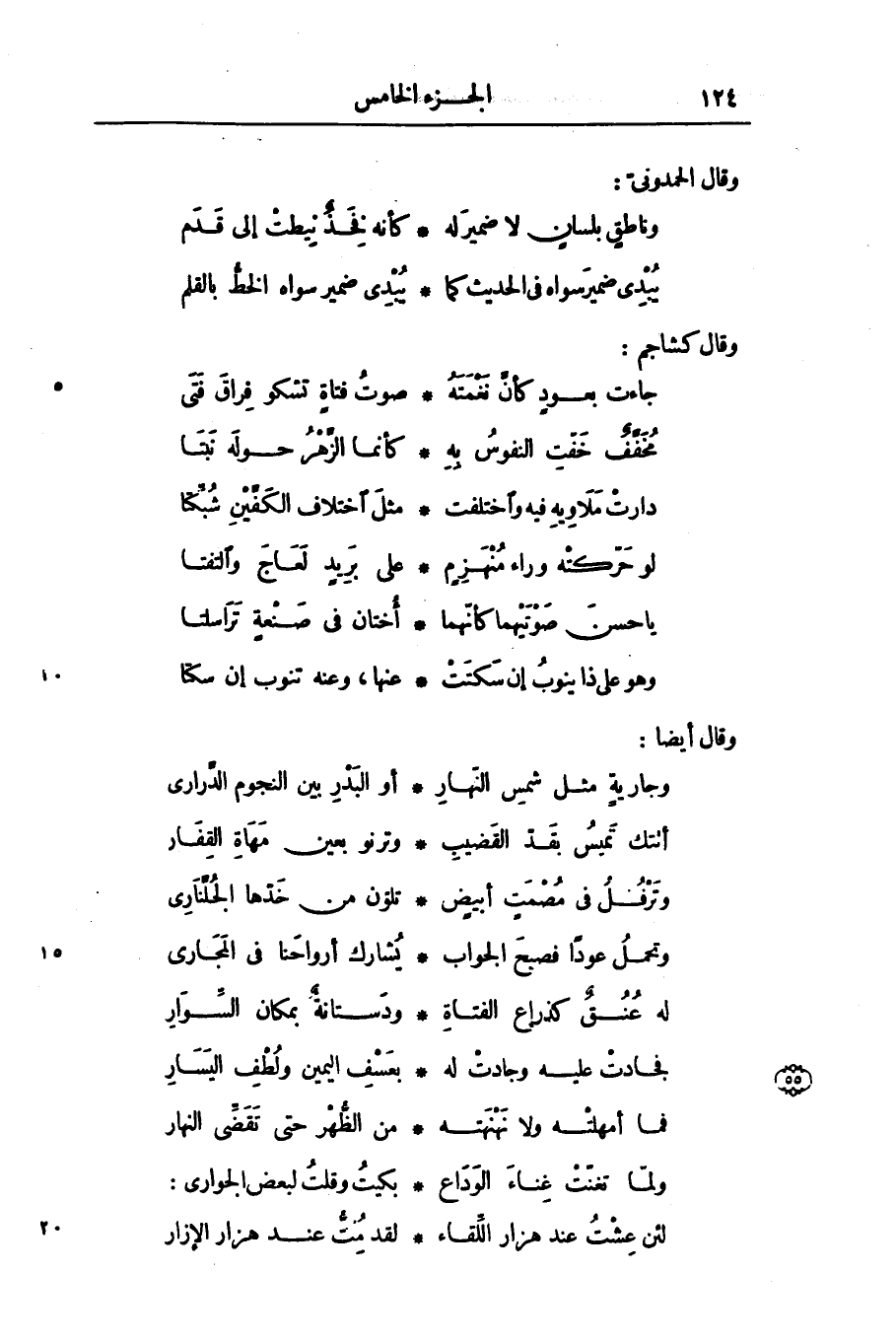 ولمّا تغنّت غناء الوداع ... بكيت وقلت لبعض الجوارى: