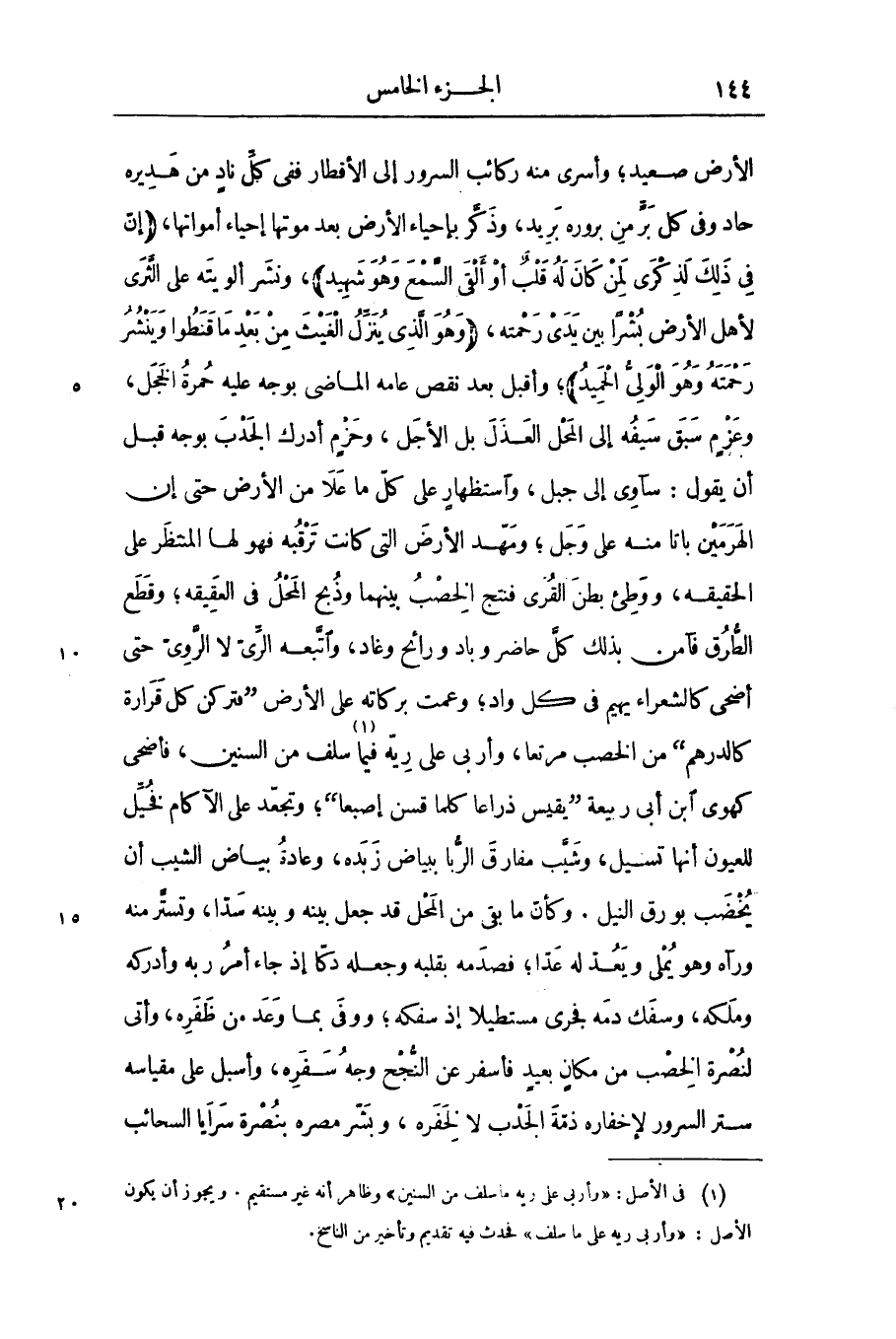 [1] فى الأصل: «وأربى على ريه ما سلف من السنين» وظاهر أنه غير مستقيم. ويجوز أن يكون الأصل: «وأربى ريه على ما سلف» فحدث فيه تقديم وتأخير من الناسخ.