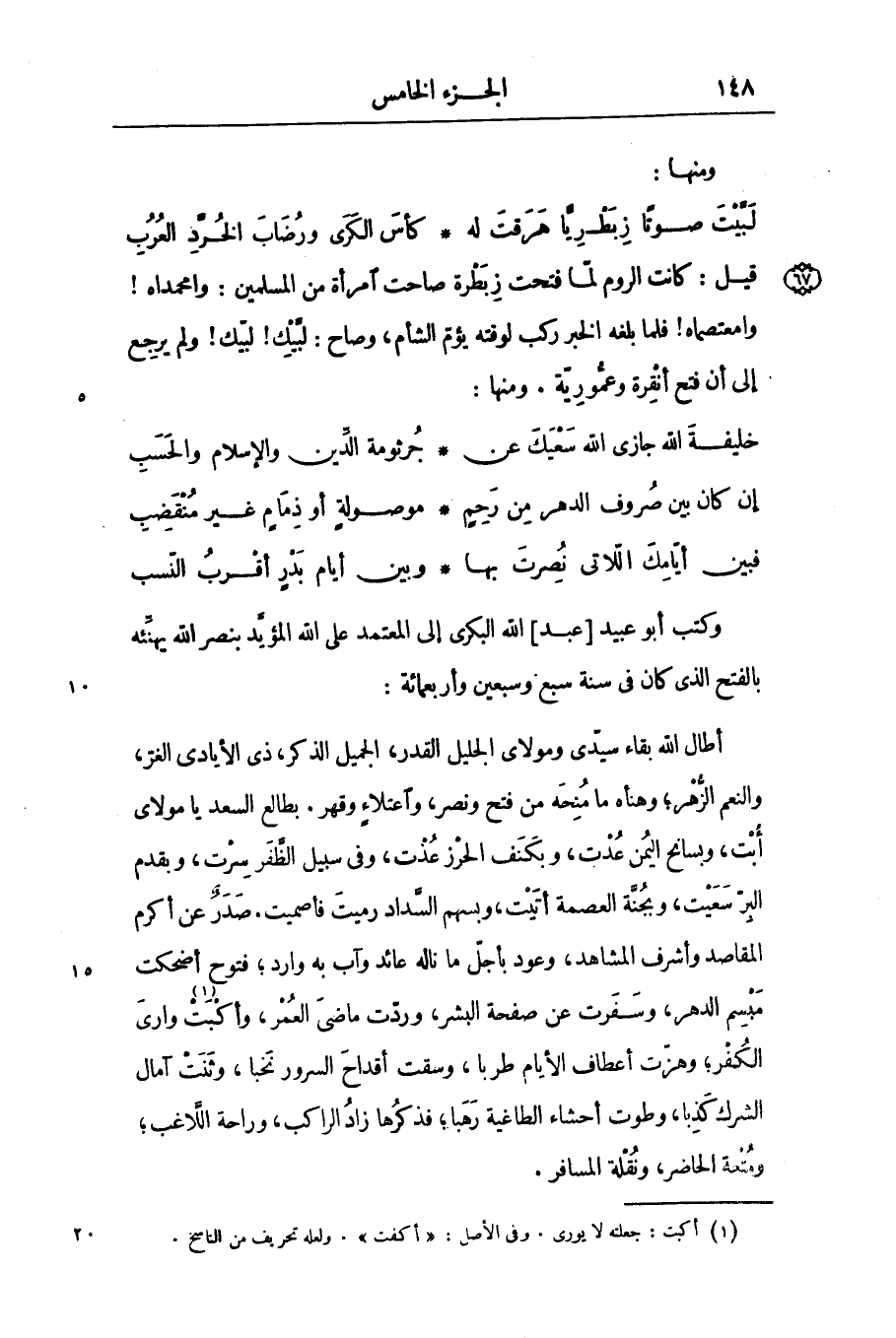 لبّيت صوتا زبطريّا هرقت له ... كأس الكرى ورضاب الخرّد العرب