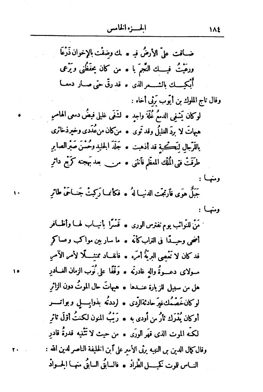 وقال كمال الدين بن النبيه يرثى الأمير على ابن الخليفة الناصر لدين الله: