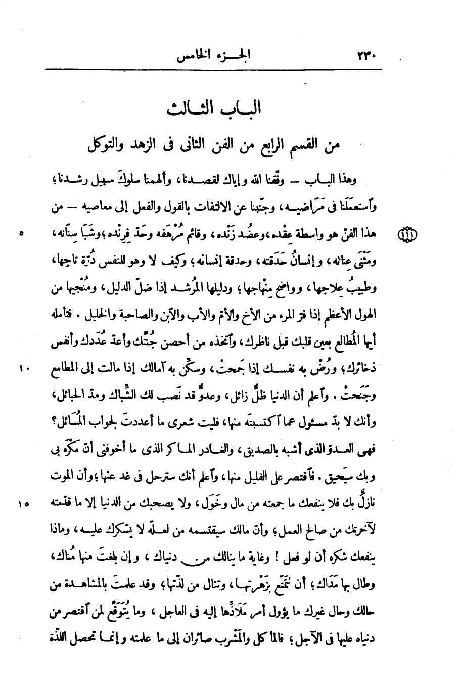 الباب الثالث من القسم الرابع من الفن الثانى فى الزهد والتوكل