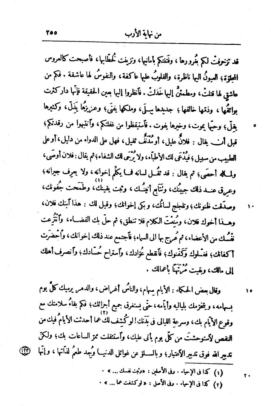 وقال بعض الحكماء: الأيام سهام، والناس أغراض، والدهر يرميك كلّ يوم بسهامه، ويتخرّمك بلياليه وأيّامه، حتّى يستغرق جميع أجزائك؛ فكم بقاء سلامتك مع وقوع الأيّام بك، وسرعة الليالى فى بدنك! لو كشف لك [2] عما أحدثت الأيام فيك من النقص لاستوحشت من كلّ يوم يأتى عليك، واستثقلت ممرّ الساعات بك؛ ولكنّ تدبير الله فوق تدبير الاعتبار؛ وبالسلوّ عن غوائل الدنيا وجد طعم لذّاتها، وإنّها